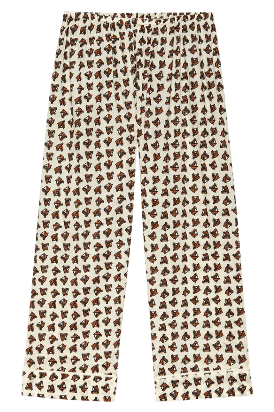 This sleep pant is crafted from the softest cotton in the Medallion Print. It features a wide leg, slightly dropped rise, an elastic high waist and piped cuff.