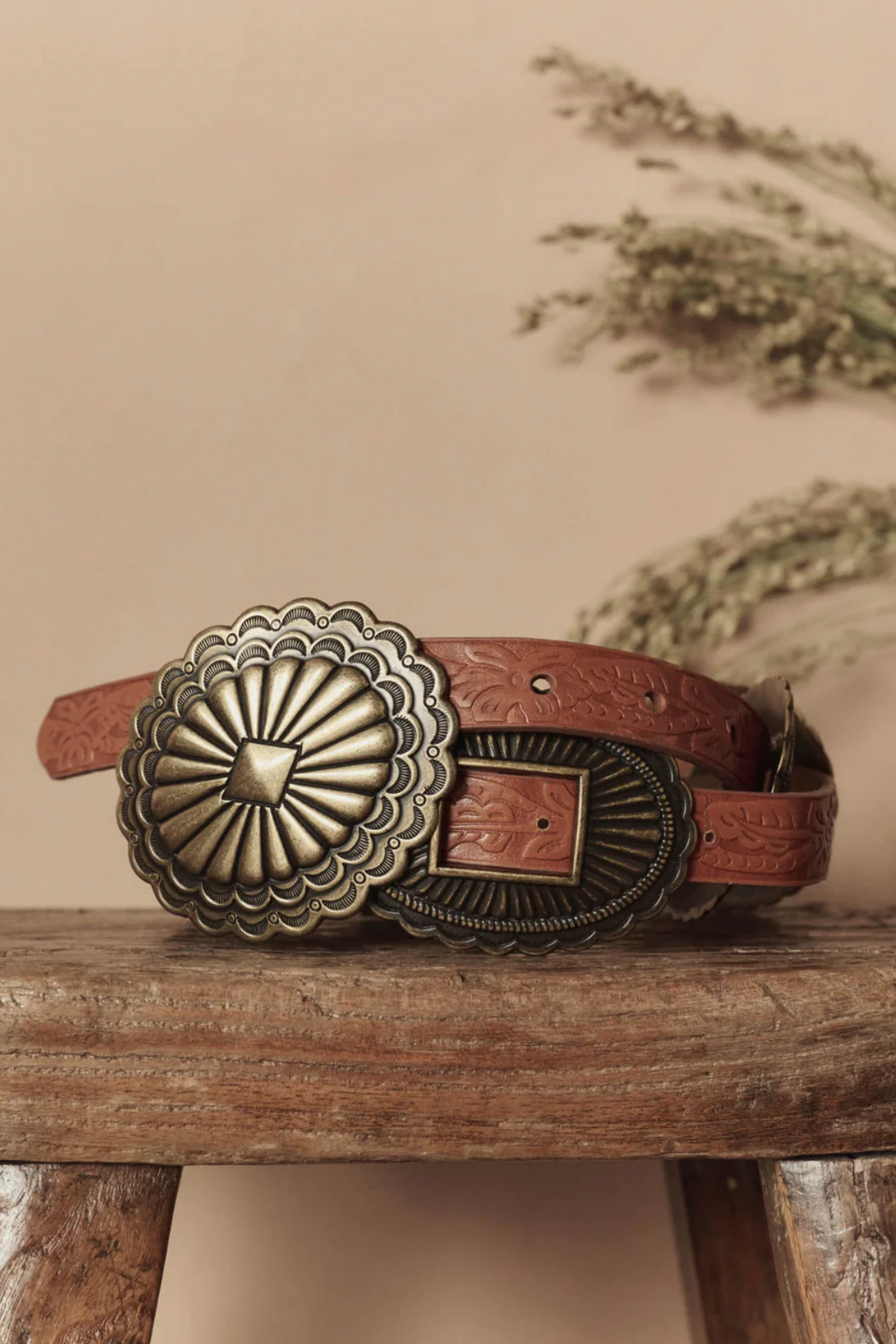 Made in collaboration with Stetson, whose legacy of authentic craftsmanship has defined the spirit of the West since 1865, this special edition belt is crafted from top-grain leather and features intricate decorative tooling, Southwestern slider conchos and an oval plaque buckle.