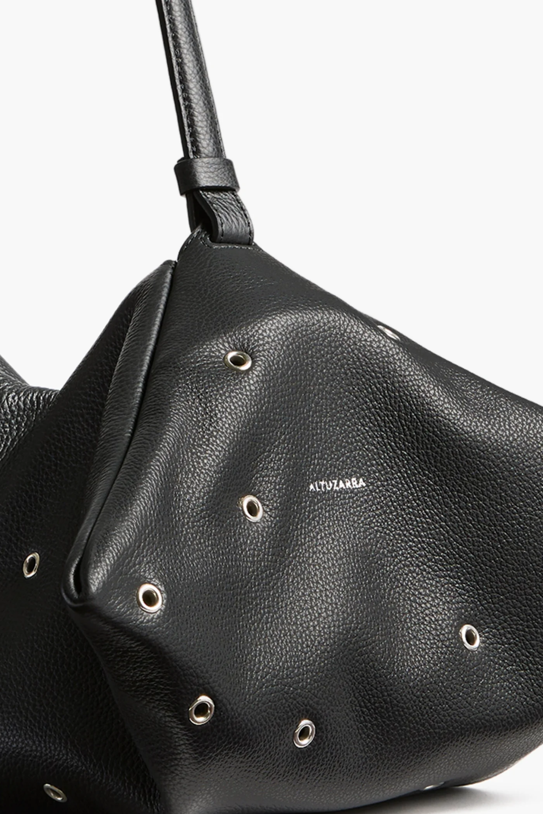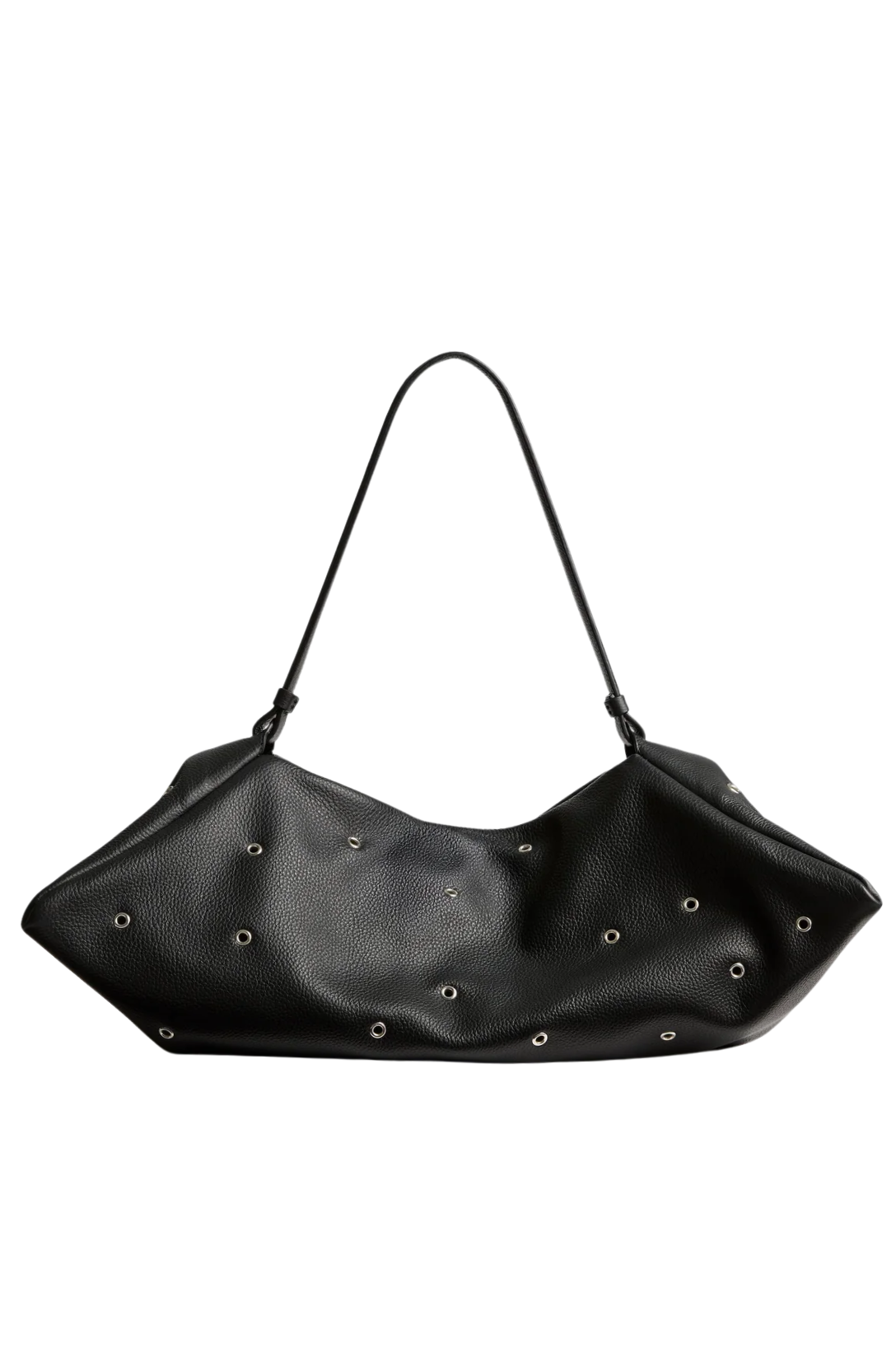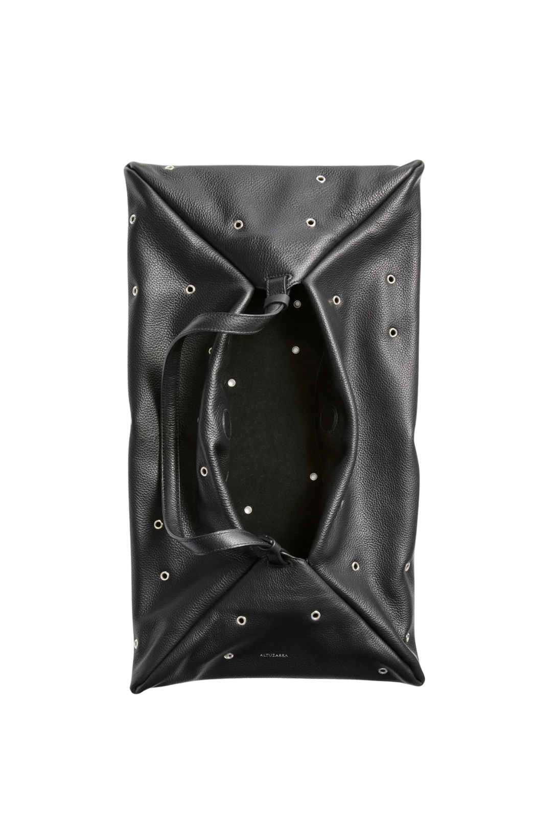 The Origami Bag is inspired by the ancient paper folding art. It's shaped in Spain from a single, rectangular piece of leather which folds down completely flat and is punctuated with metal hardware.