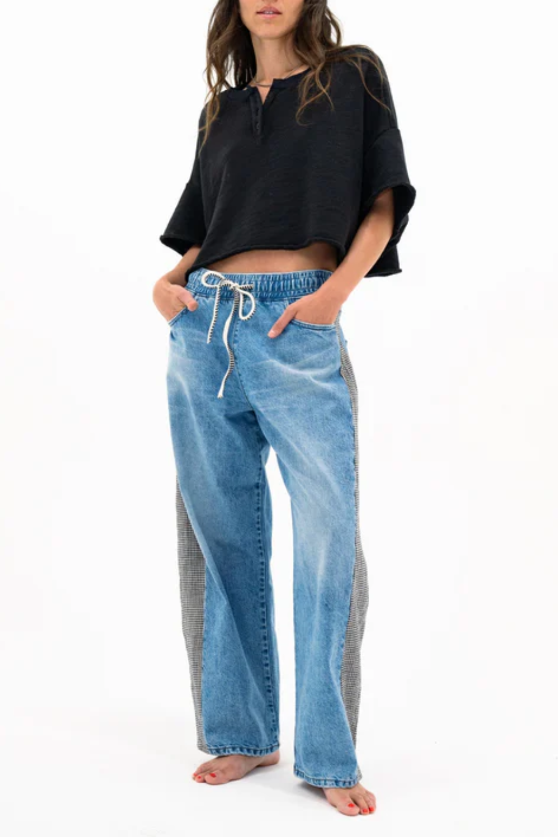 An effortless short sleeve pullover with a cropped, boxy fit and minimal collar detail. Designed for comfort and ease, this lightweight knit top is made from 100% American cotton with a soft hand feel and natural texture. The relaxed silhouette pairs perfectly with any denim for a laid-back look.