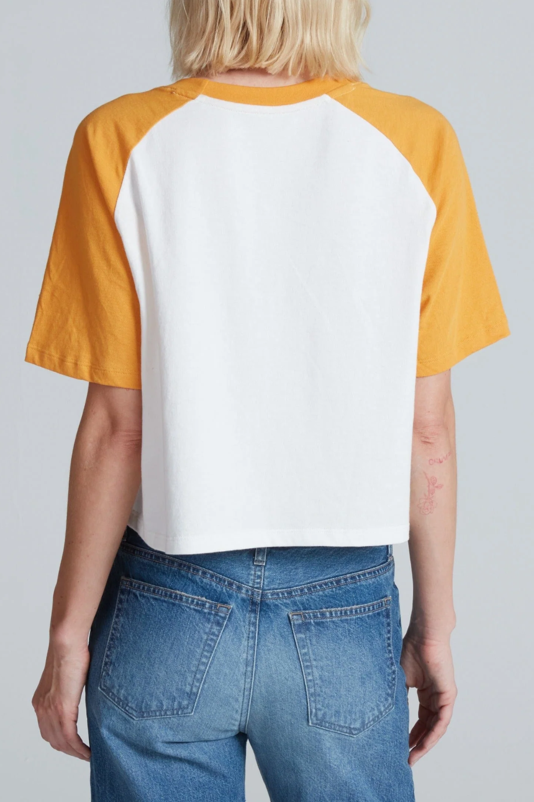 The SS Baseball Tee is a cropped, relaxed-fit tee with a classic raglan sleeve design. Its easy shape and playful contrast sleeves make it an everyday staple, perfect for pairing with denim or layering under jackets. A modern twist on a timeless sporty style.