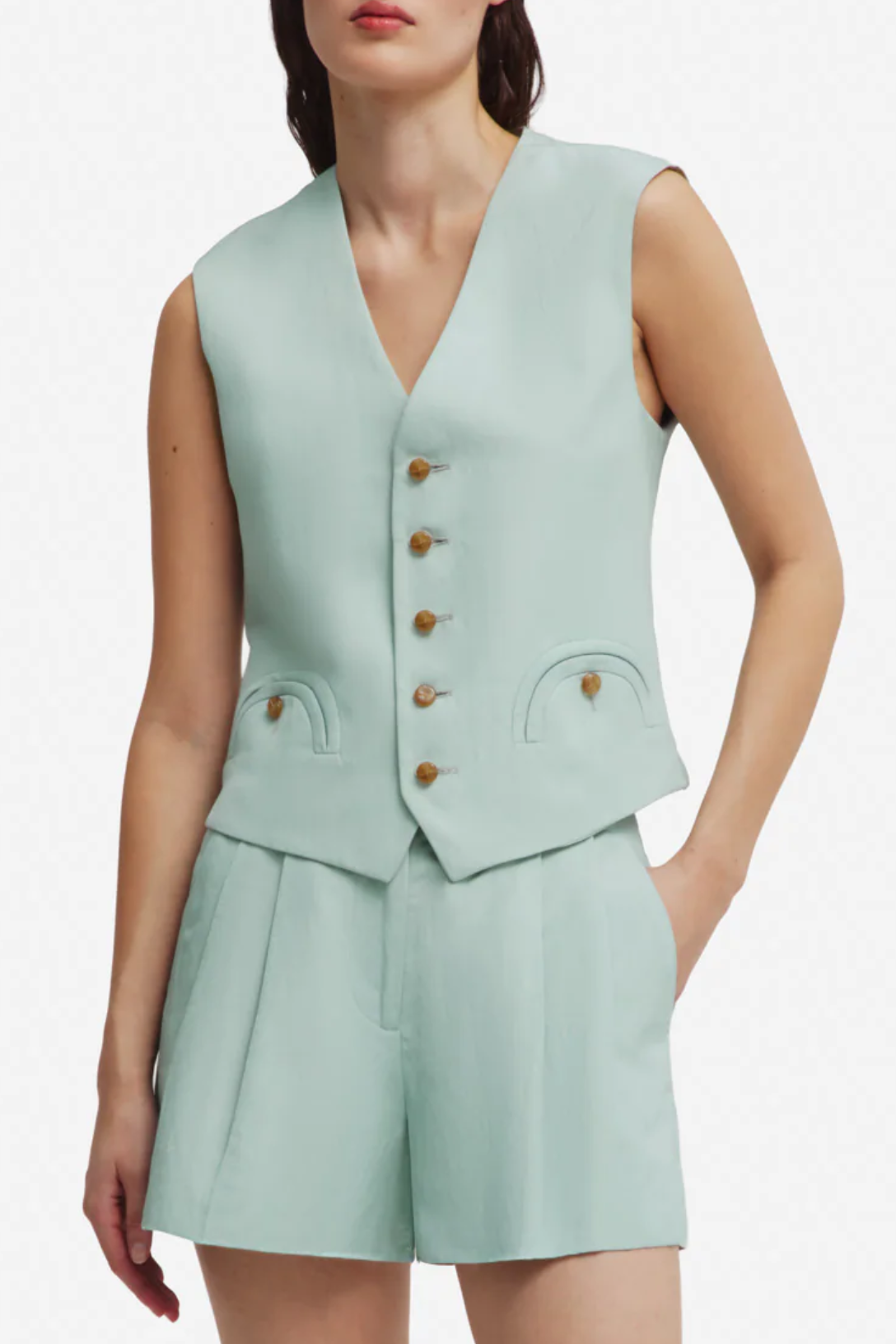 Crafted from a summer-ready silk-linen blend, the Zenith Sugar Feral Gilet features a minimalist design and a relaxed fit, ideal for layering. Signature Smiley pockets add instant recall.