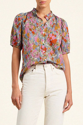 Dani Silk Blouse | Light Nectar Pink Small Multi Butterfly Jungle