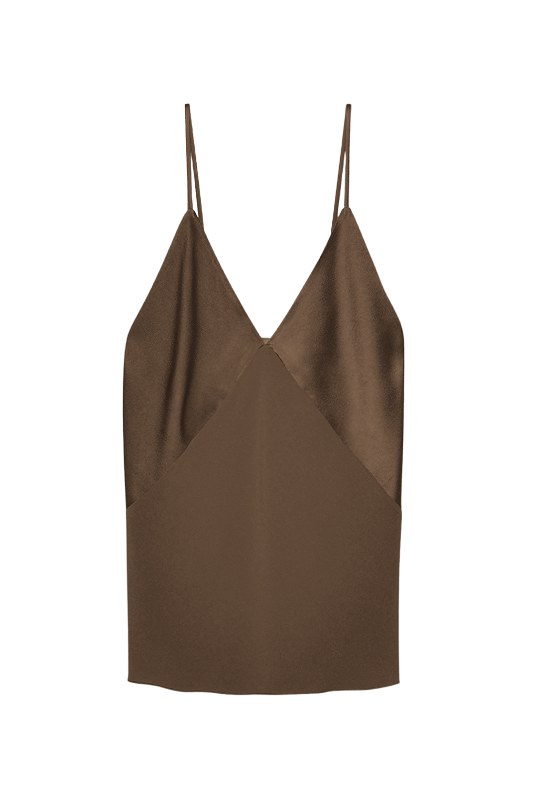 A light caress on the skin — the slip top in envers satin traces slender lines across the shoulders and plays with a tactile contrast between shiny cups and a matte bodice. A refined, delicate elegance for a piece easy to wear under a blazer, or perfect for early warm days beneath a cocoon sweater.