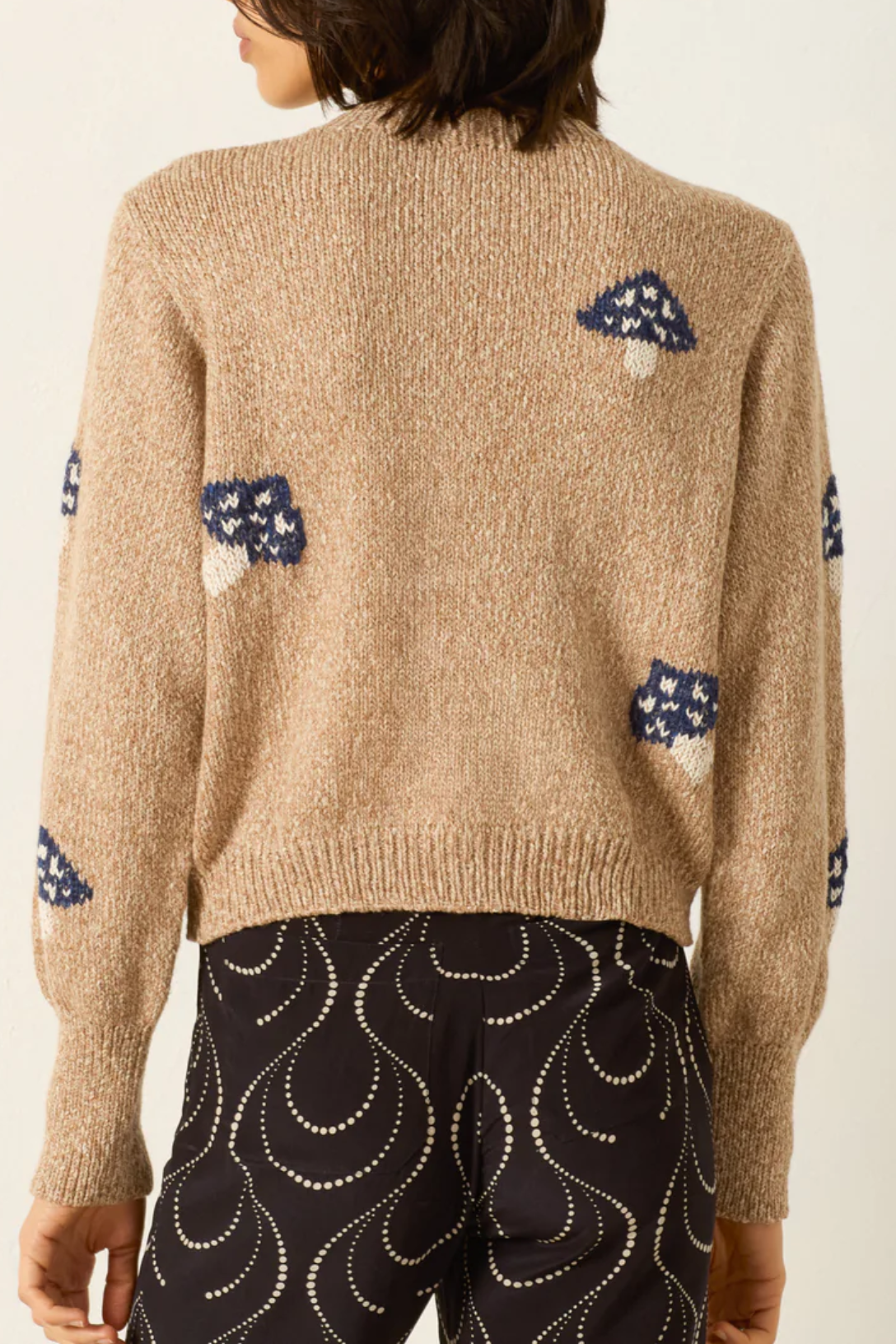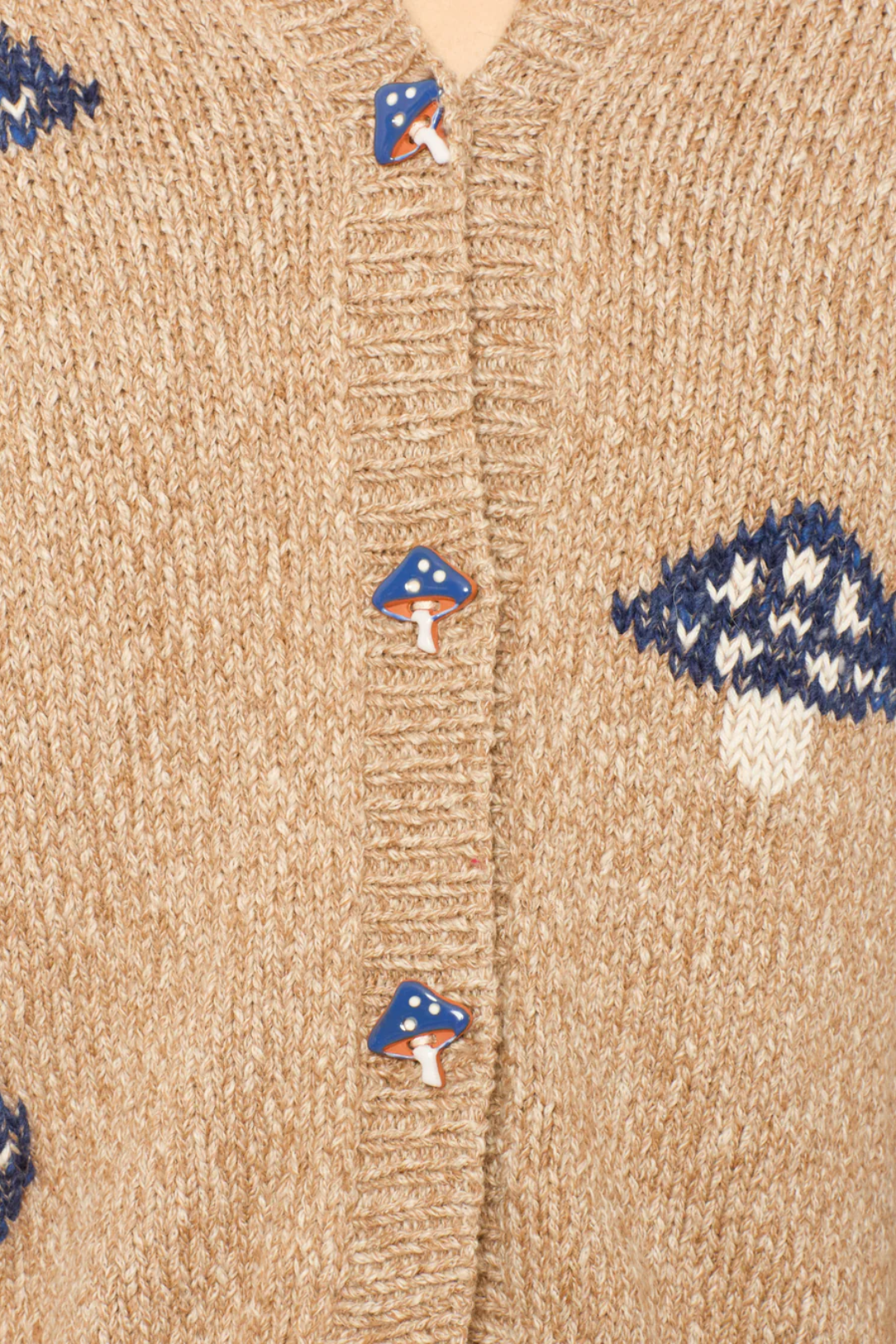Knitted from a soft baby alpaca blend, Alix of Bohemia's cardigan features a spotted mushroom motif. The cozy layer is finished with handmade buttons by ceramist Daphné Verley.