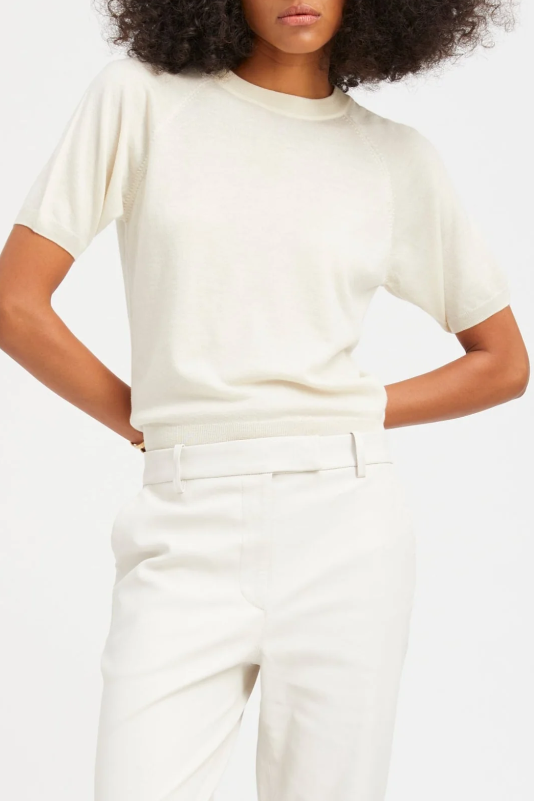 Cashmere Short Sleeve Raglan Sweater | Chalk