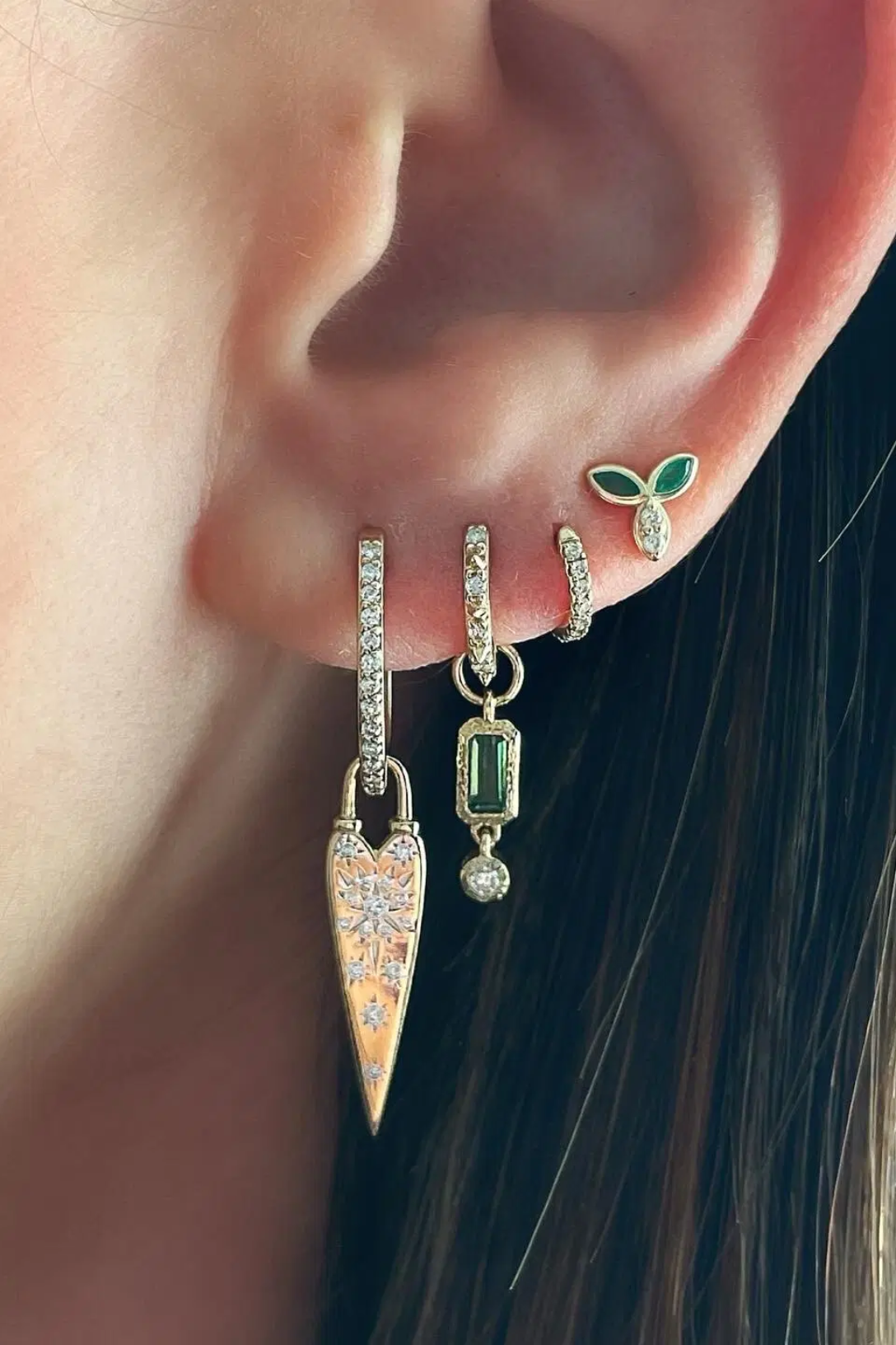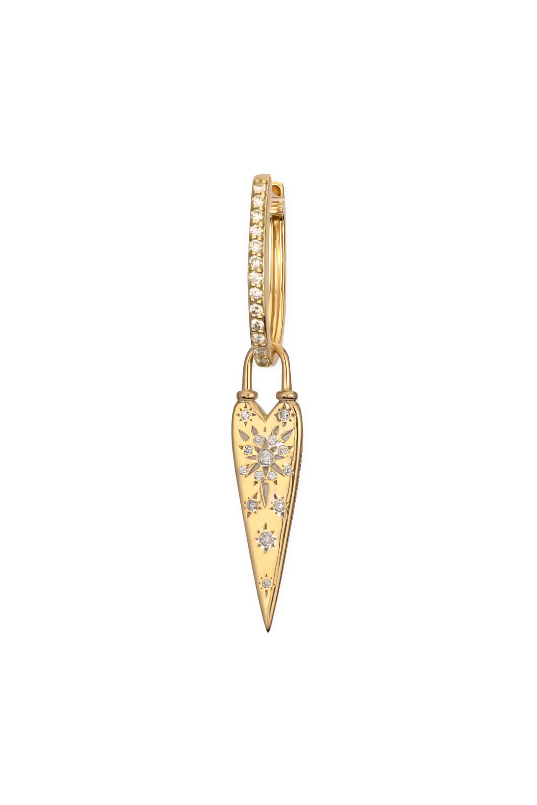 It's a love explosion! The Love Explosion Heart Charm is exploding with sparkling diamonds and 14K Yellow Gold. Worn on hoop earrings or hanging from a chain bracelet or necklace, this charm explodes with love.
