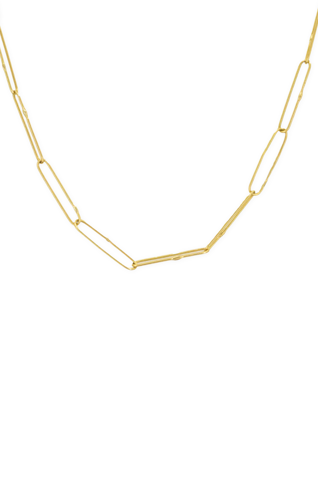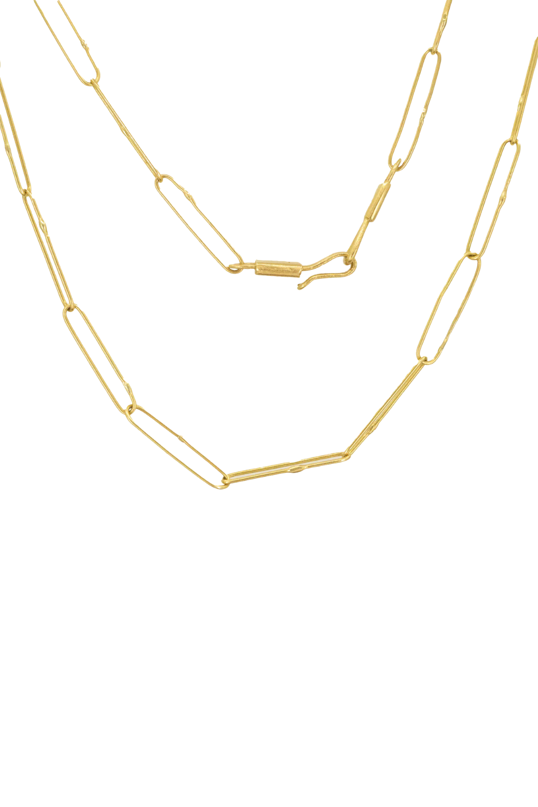18K Gold handmade paperclip chain with signature hook clasp.