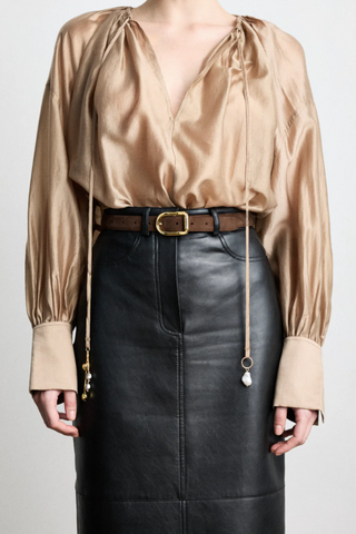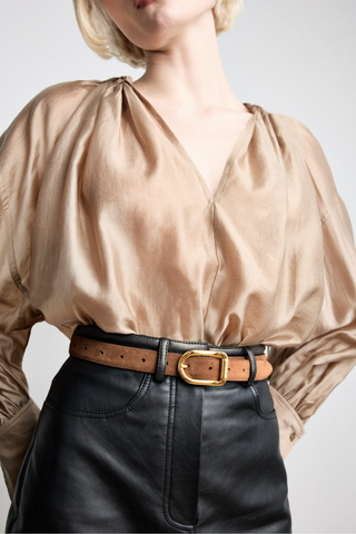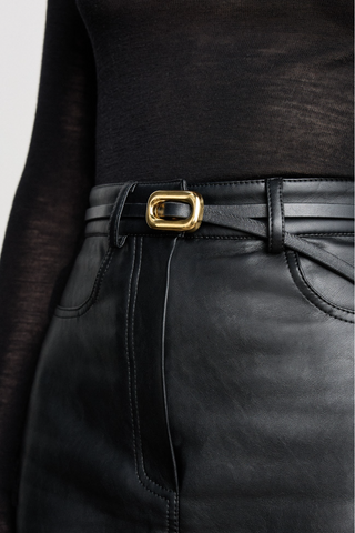 Déhanche belts redefine the accessory with their signature luxury hardware and leather, elevating accessorizing to an art form. Inspired by the discerning eye of the modern woman, the collection exudes an understated glamour that speaks directly to the female gaze. From sleek, minimalist designs to bold, architectural pieces, the collection offers a diverse range of styles to suit every occasion and mood, ensuring that sophistication is always within reach.