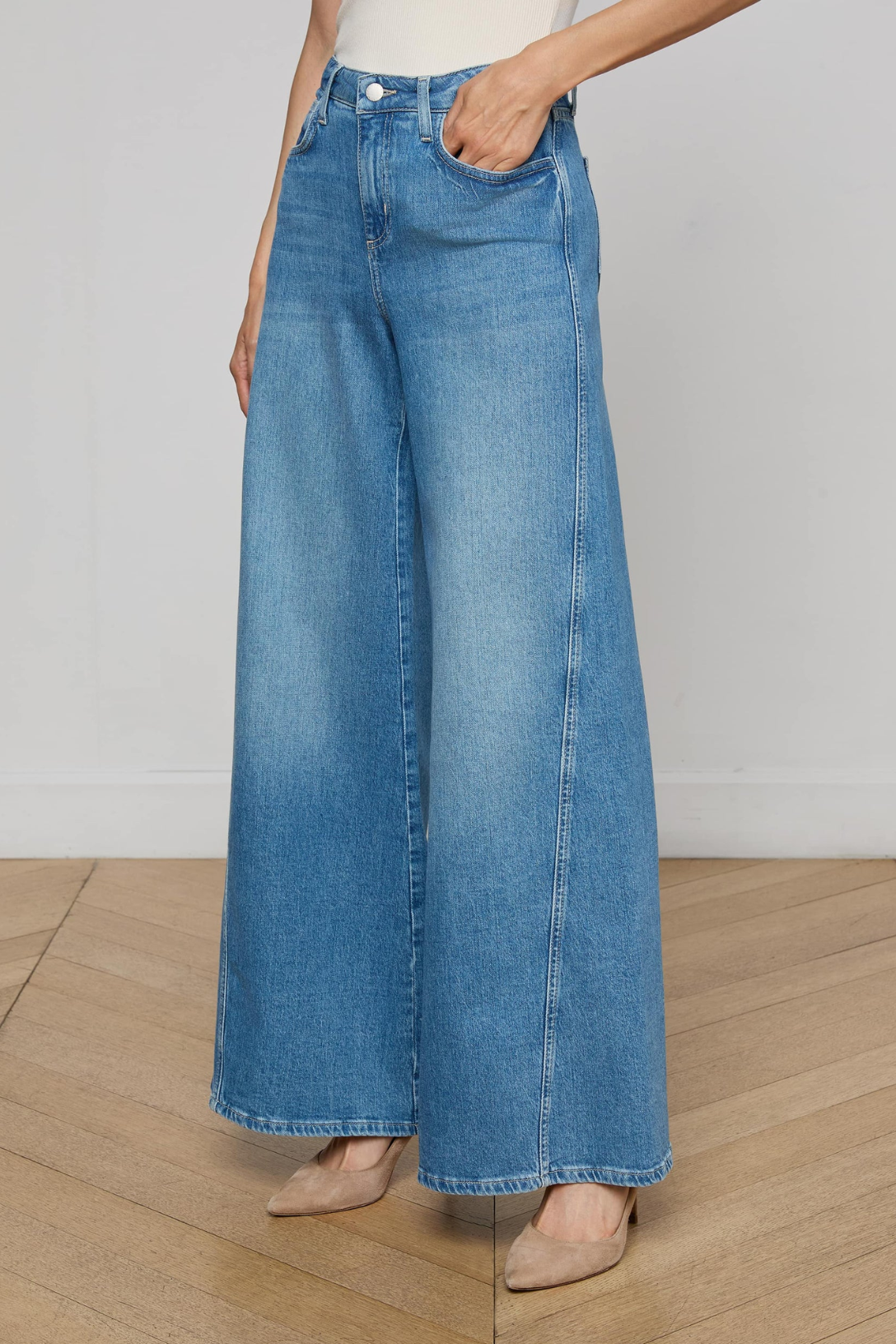 The impossibly cool wide-leg jean that’s trending now. A slim fit through the hips drapes to a wider leg with a twisted seam that flatters all figures. The Beau has become an instant L’AGENCE favorite and is now back in a light-medium wash.