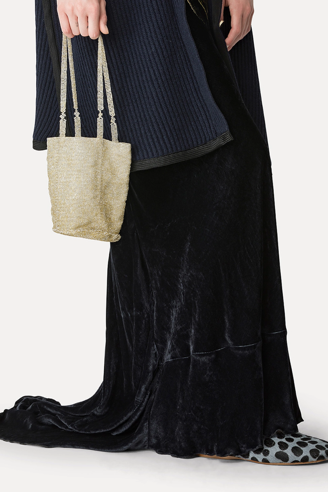 Sparkly mini bag encrusted with glass beads that glisten like a jewel. The soft yielding silhouette adapts naturally and easily to your will while the slender handles channel understated elegance. This gorgeous timeless accessory has artisanal couture undertones and will brighten your nights with shimmery glitz.