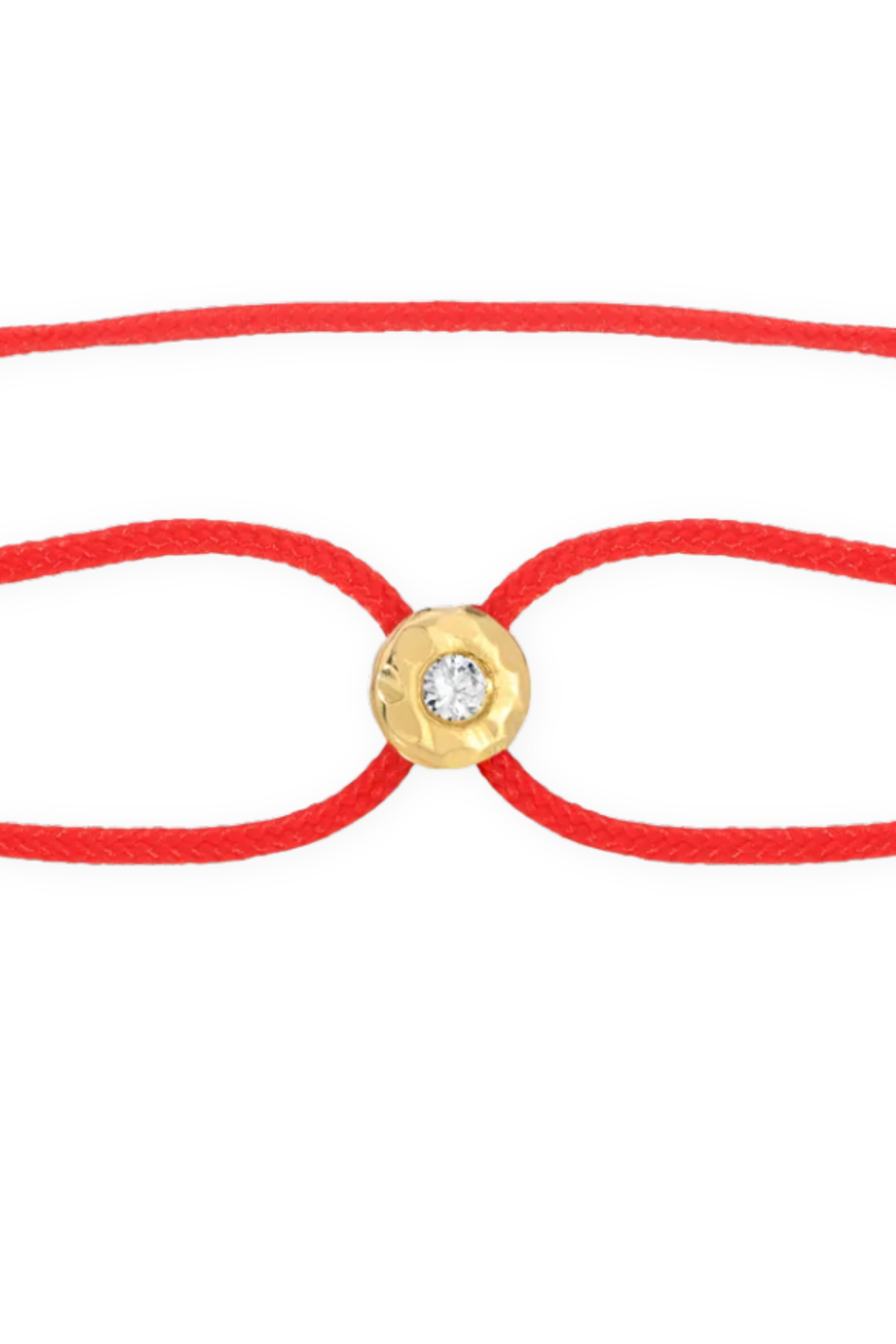 From Octavia Elizabeth's capsule Nesting Gem Collection, rich 18K Yellow Gold surrounds a diamond. Each bezel is finished by hand in the Octavia Elizabeth signature hammer finish. The Parachute Bracelet is adjustable and when open, the size fits most.