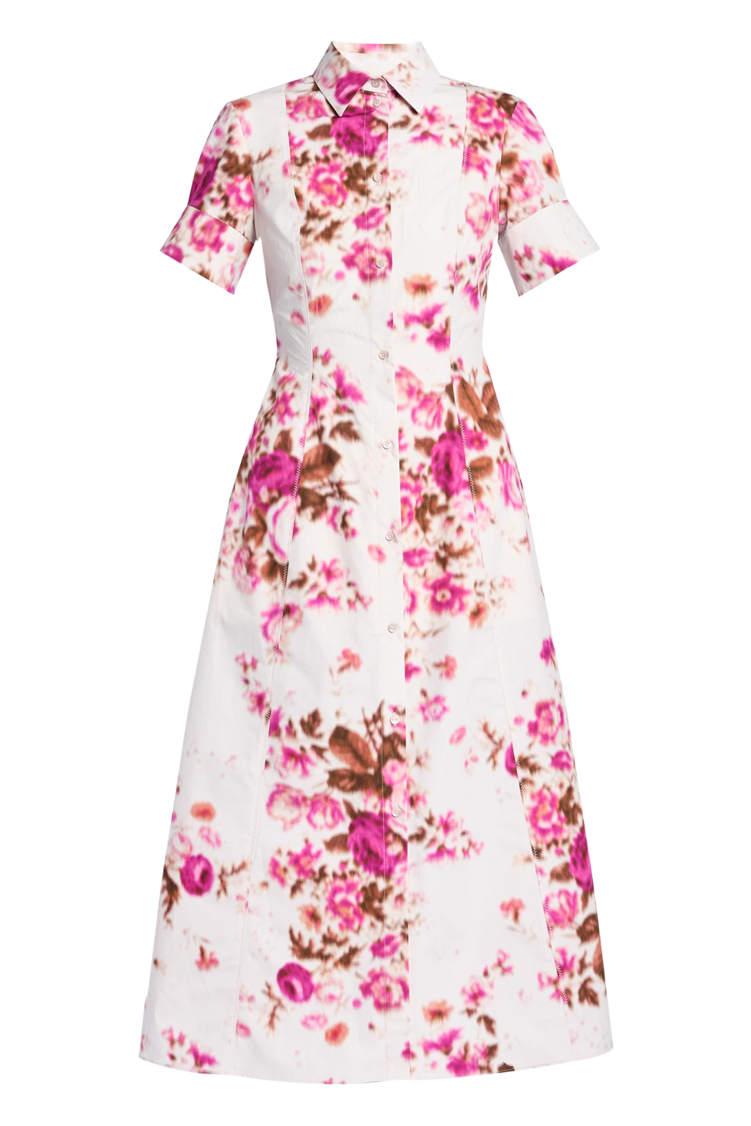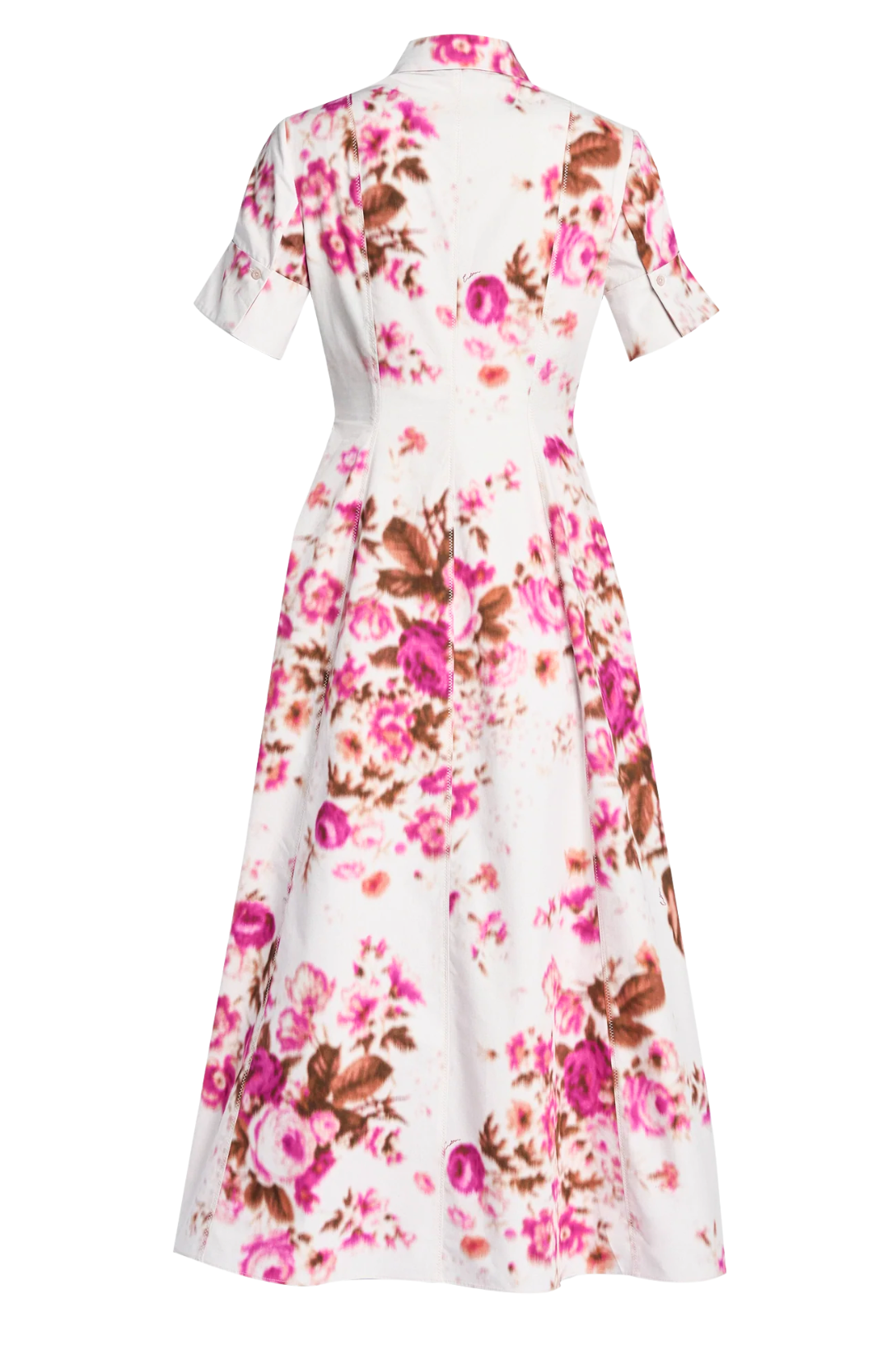 Floral Print Cotton Midi Shirt Dress | Rose Bouquet Hot Pink