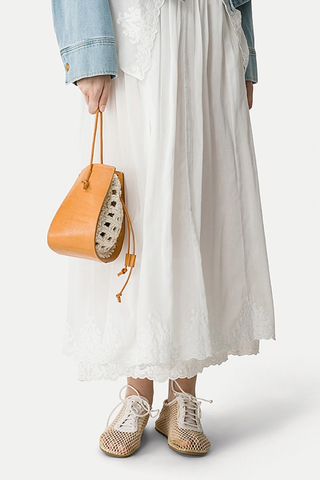 "My Pepita" Small Leather And Crochet Bucket Bag | Naturale