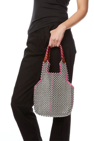 "My Pepita" Small Leather And Crochet Bucket Bag | Naturale