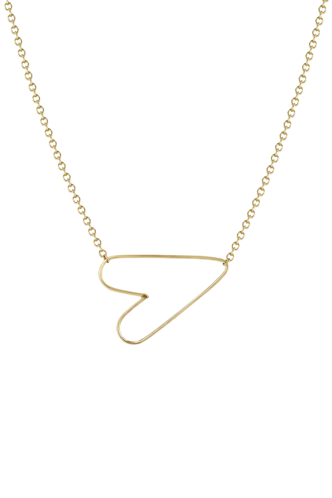 14K Yellow Gold cable chain necklace with a small sideways anchored delicate hammered heart.