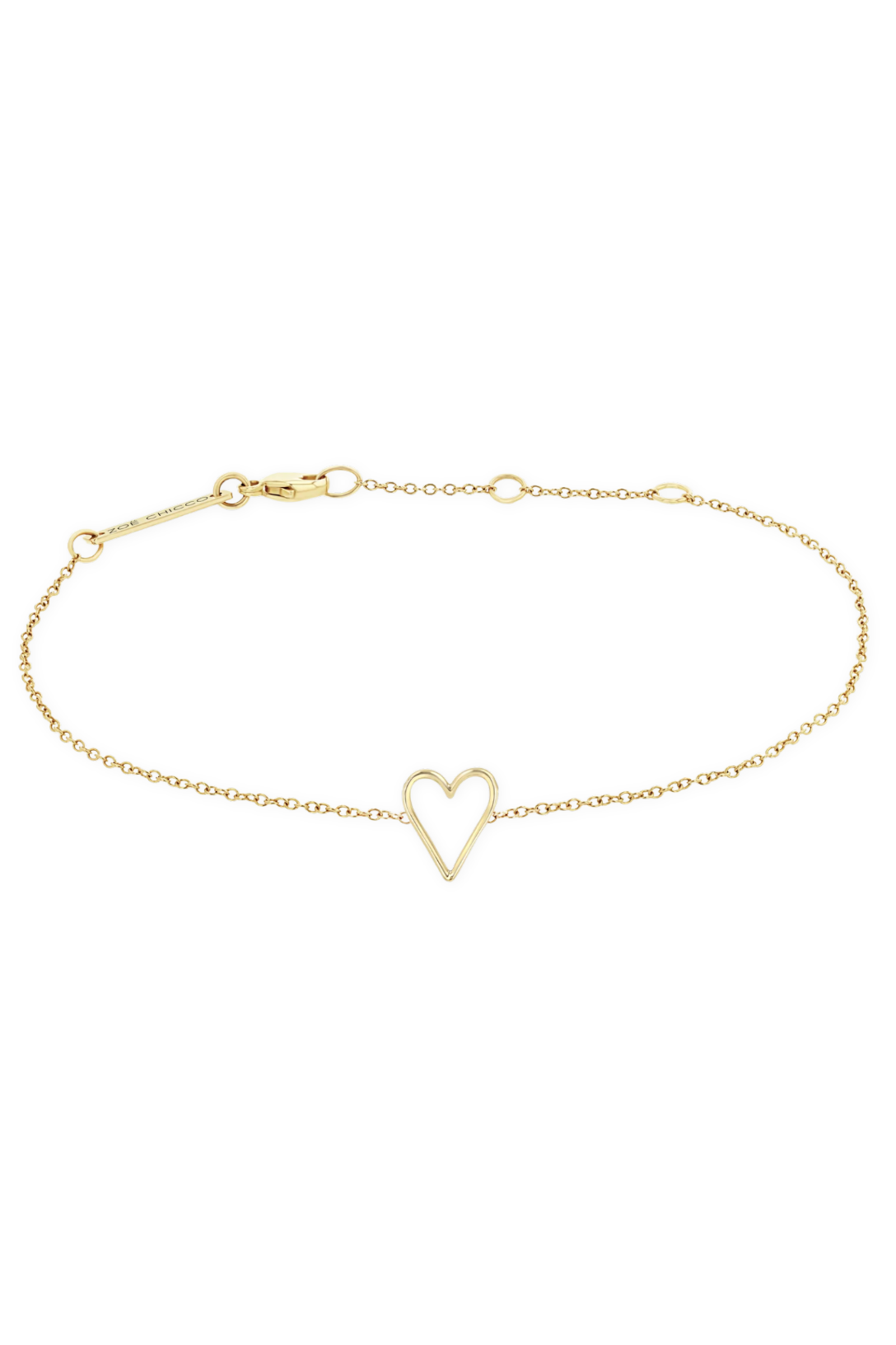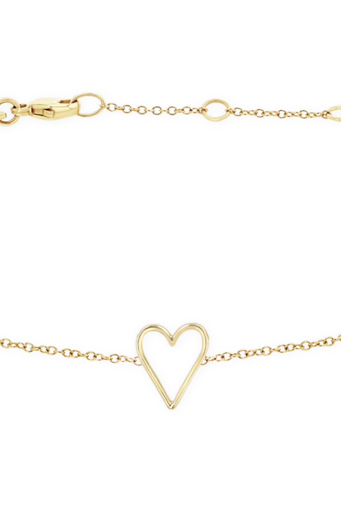 14K Yellow Gold tiny open heart bracelet.