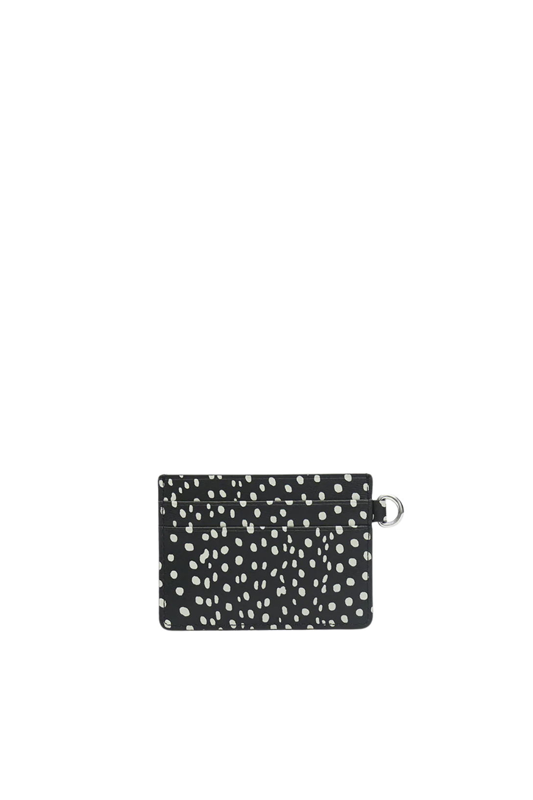 Printed leather card holder.