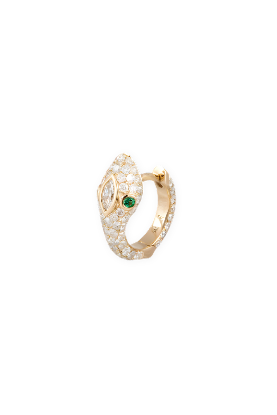 Emerald eyes pave diamond marquise head snake mini hoop.