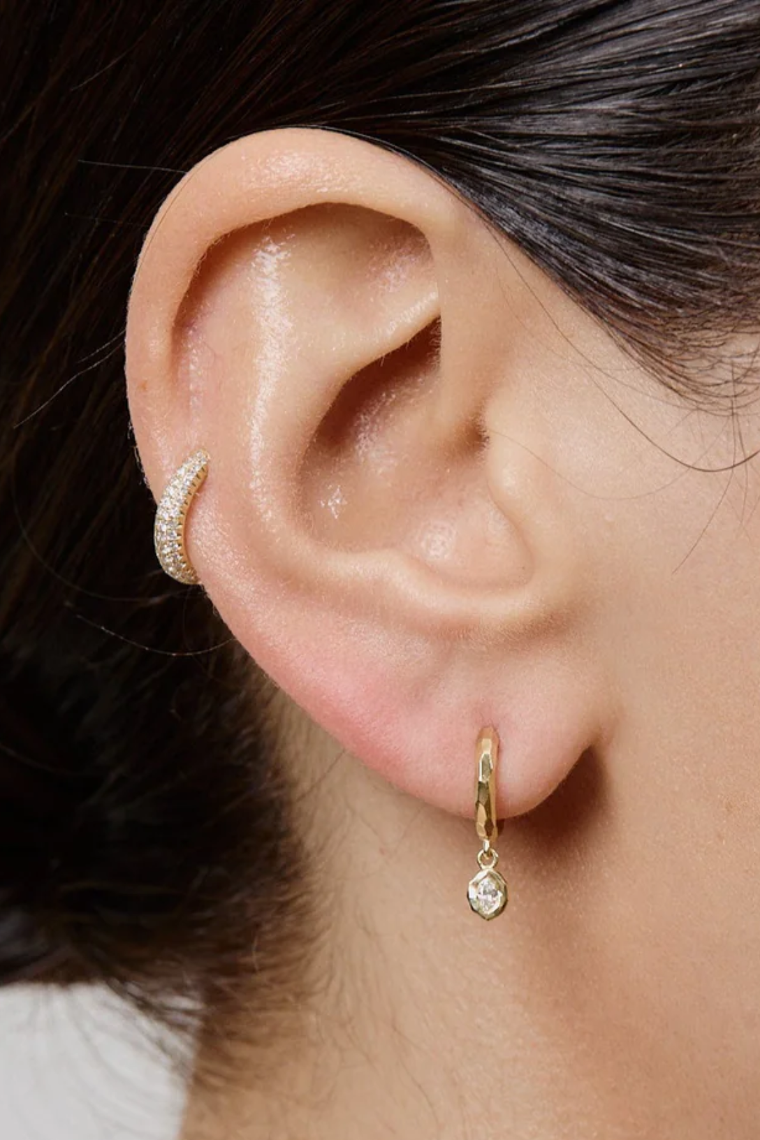 From Octavia Elizabeth's Nesting Gem Collection, the Charmed Micro Gabby Hoops will brighten up your ear game. Its closure is secure and comfortable for everyday wear and even sleeping. Makes a great second or third piercing earring, but is also sweet in a standard lobe piercing.