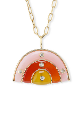 18K Yellow Gold, Carved Pink Opal, Carnelian, Yellow Chalcedony, Diamond Insets (~0.32cttw)
