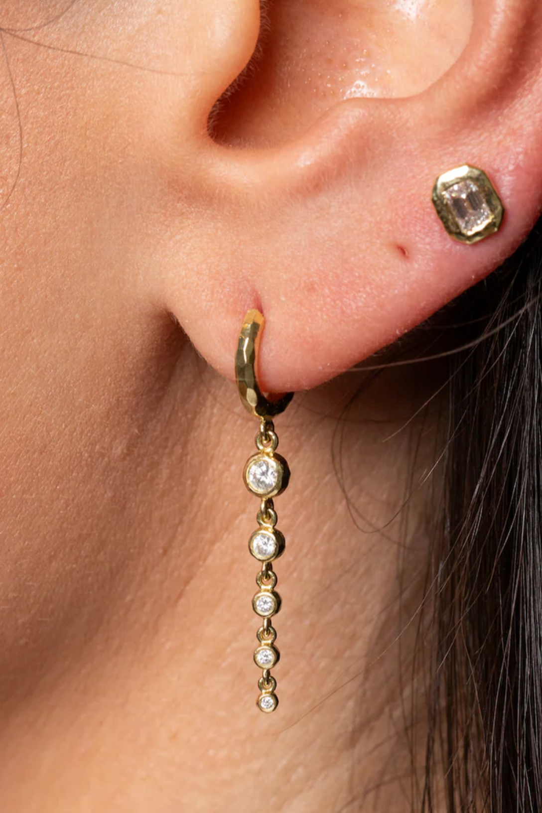 From Octavia Elizabeth's Nesting Gem Collection, a classic with a twist! Octavia Elizabeth loves the length of these five graduated diamond drop earrings. These are great earrings for everyday wear or special occasions.