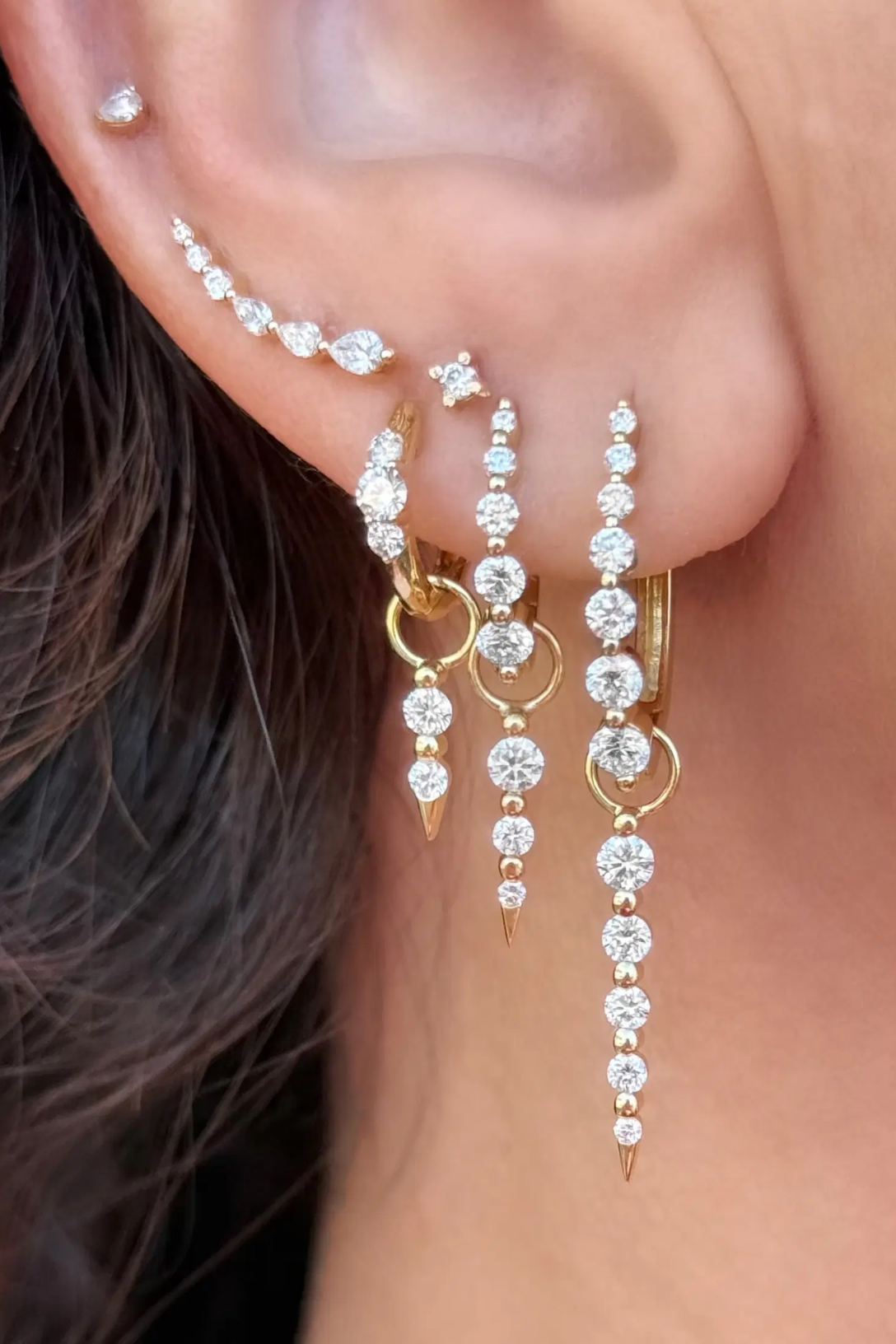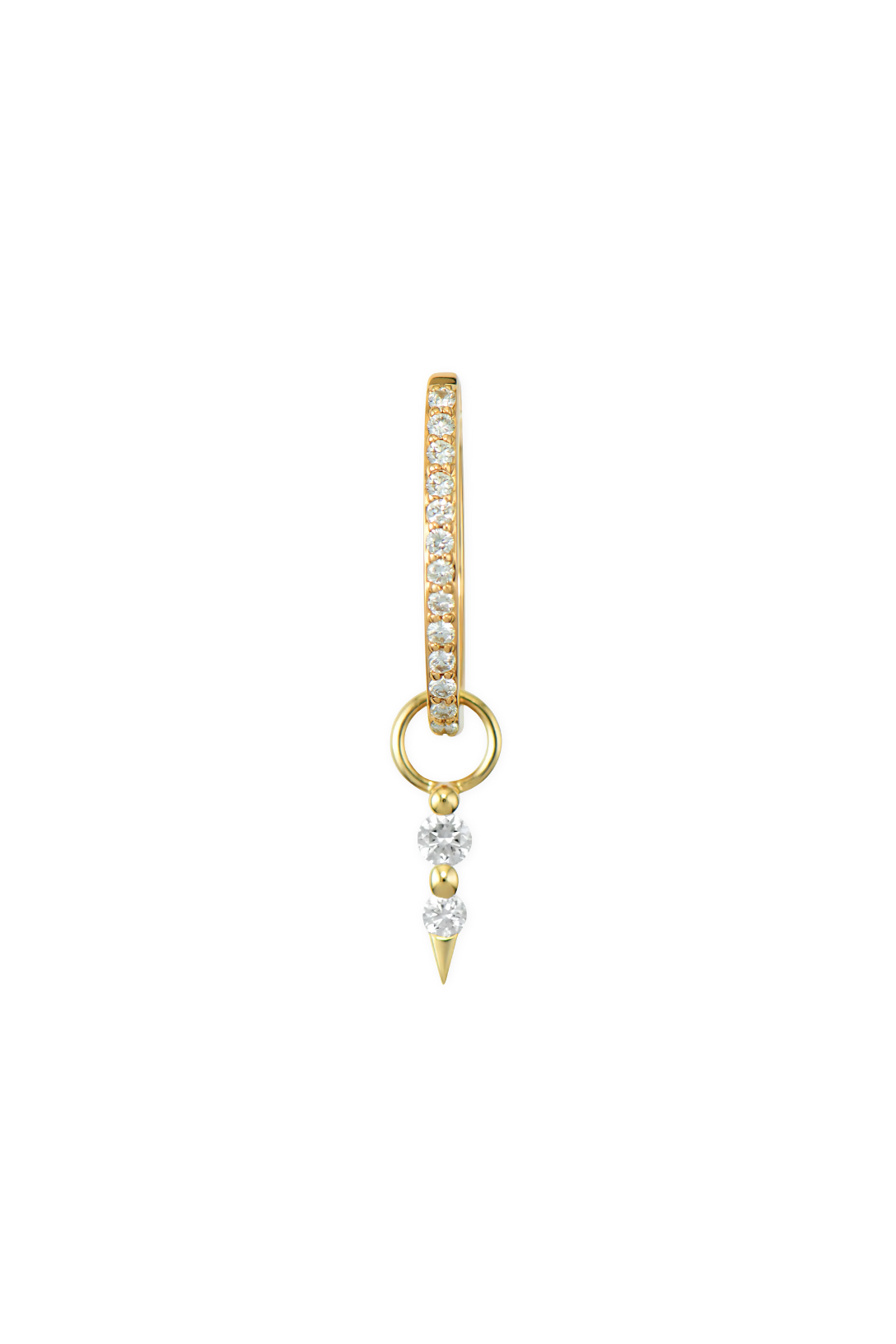 This Sari Dagger Charm | Small offers an elegant, sleek design in 14K Yellow Gold. Featuring two prong-set diamonds that create a subtle yet striking dagger-like silhouette, this charm combines simplicity with sophistication. The diamonds catch the light beautifully, adding just the right amount of sparkle to this refined piece. This sparkling gold charm can be worn on hoop earrings or added to a chain bracelet or necklace by adding an openable pendant bail.