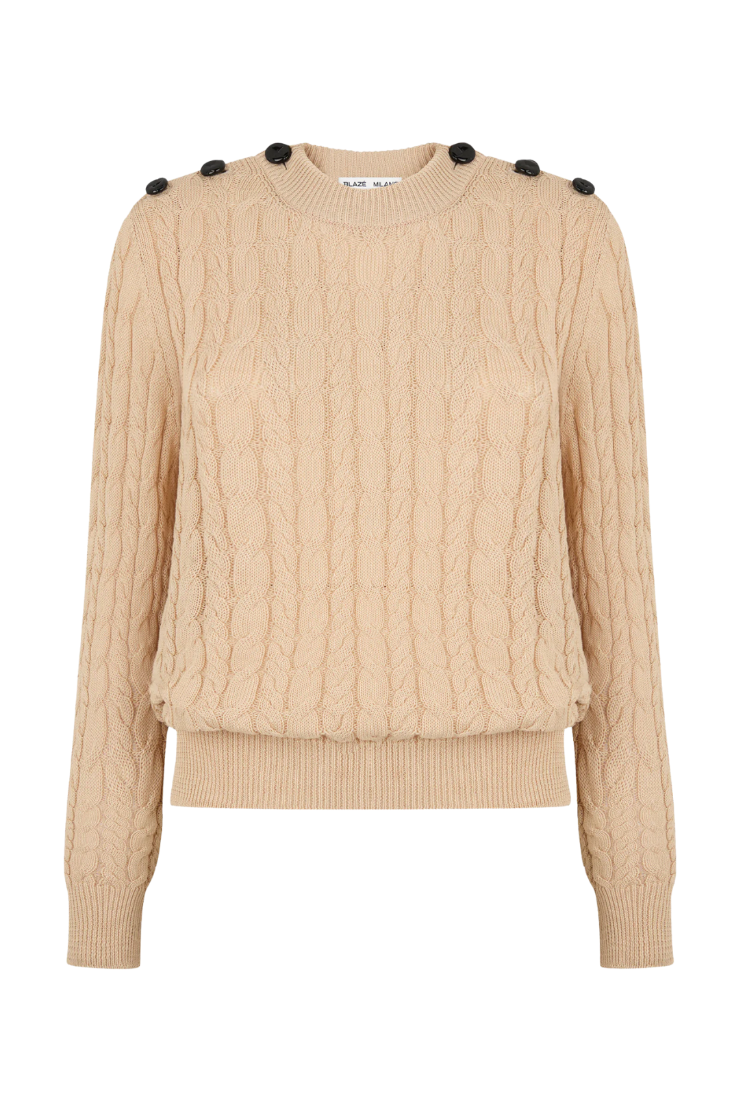 Comfortable yet chic, the Ket Round Neck offers a feminine take on the classic cable-knit sweater, defined by black loden-effect buttons running along the shoulders. An easy, everyday style designed to be worn on repeat and packed for the weekend.