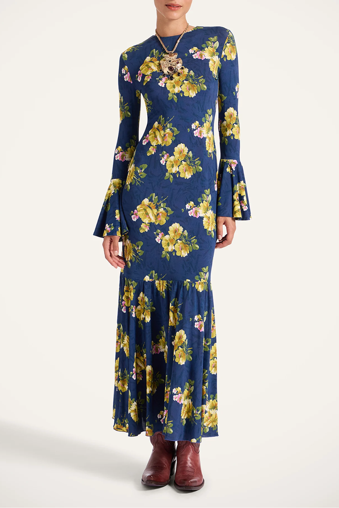 Oooh la la Alba! This slinky number is cut in figure flattering stretch jersey that hugs (but doesn’t squeeze) your curves in all the right places. For a little extra oomph we added a wide flare to each cuff and along the hem, creating an hourglass effect. Deceptively simple, this silhouette stuns from every angle.