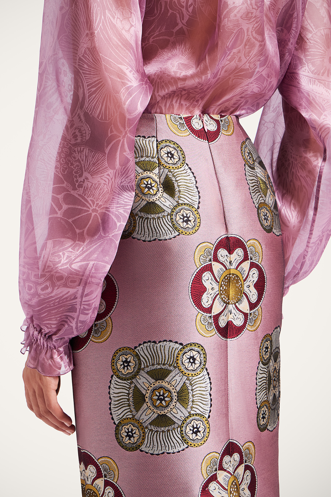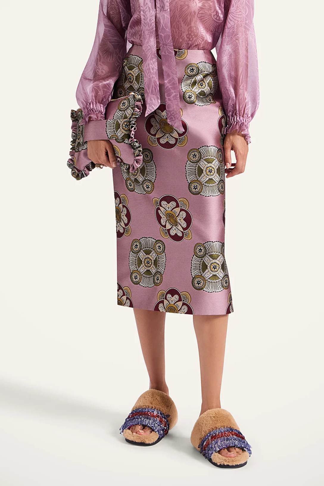 This baby is a bonafide mood-booster. Sitting low on your hips, it hems about the calf and has a slight flare for easy strolling. Arriving in sumptuous Nucleus-print silk jacquard, it’s one for all your molto elegante invites this festive season. Or for just bringing some flair to the office - hey, why not?