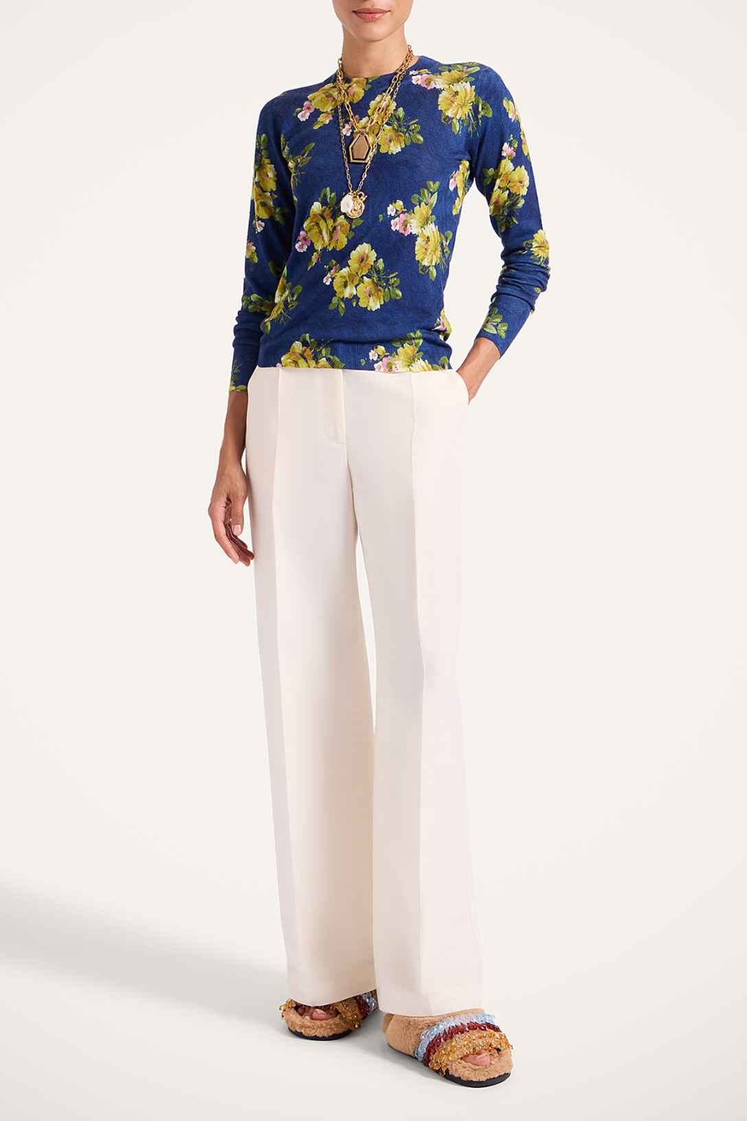 Putting Italian spins on wardrobe staples. A classic crew neck woven in a sumptuous silk-cashmere blend, for a little extra opulence. Slim through the chest and shoulders and wide along the base to create an hourglass shape, this is a super flattering weekday workhorse, fabulous alone but extra elegant under a jacket.