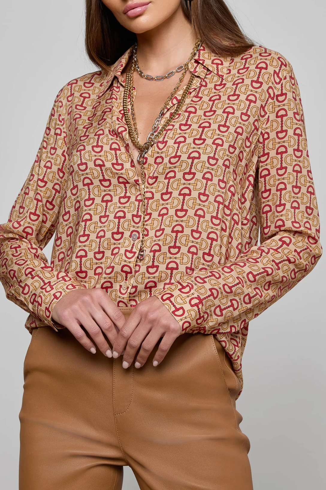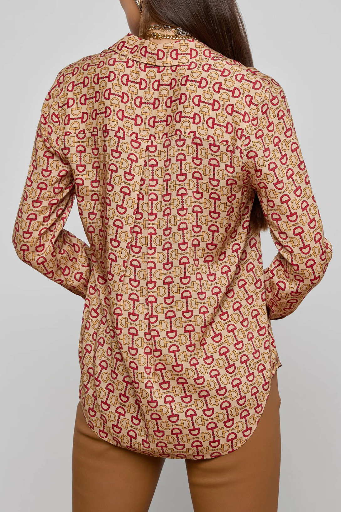 Meet the polished long sleeve button down that belongs in every wardrobe. This season, the Holly is back in a graphic horse bit print.