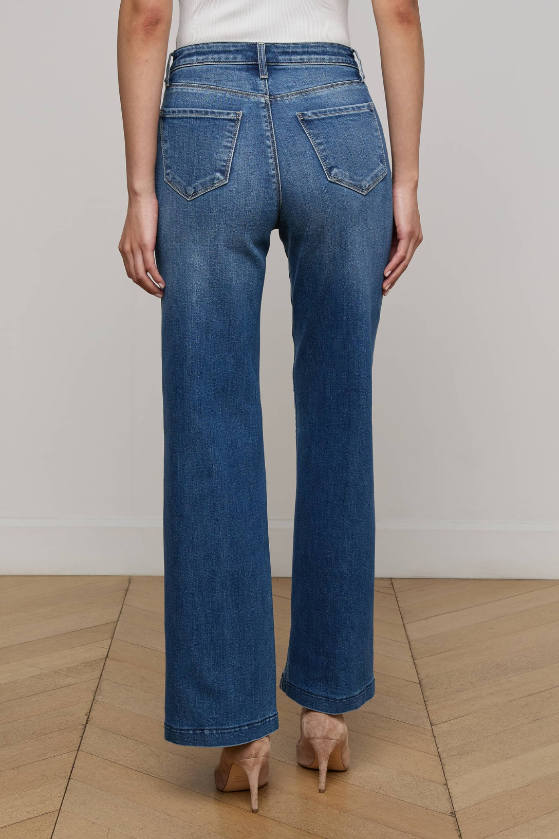 The Scottie is L'AGENCE's classic wide-leg jean. This silhouette runs fitted and flattering through the hips and upper thigh before releasing to a relaxed wide leg. A contoured waistband sits securely at the natural waist without gaping. Available in a timeless medium wash.