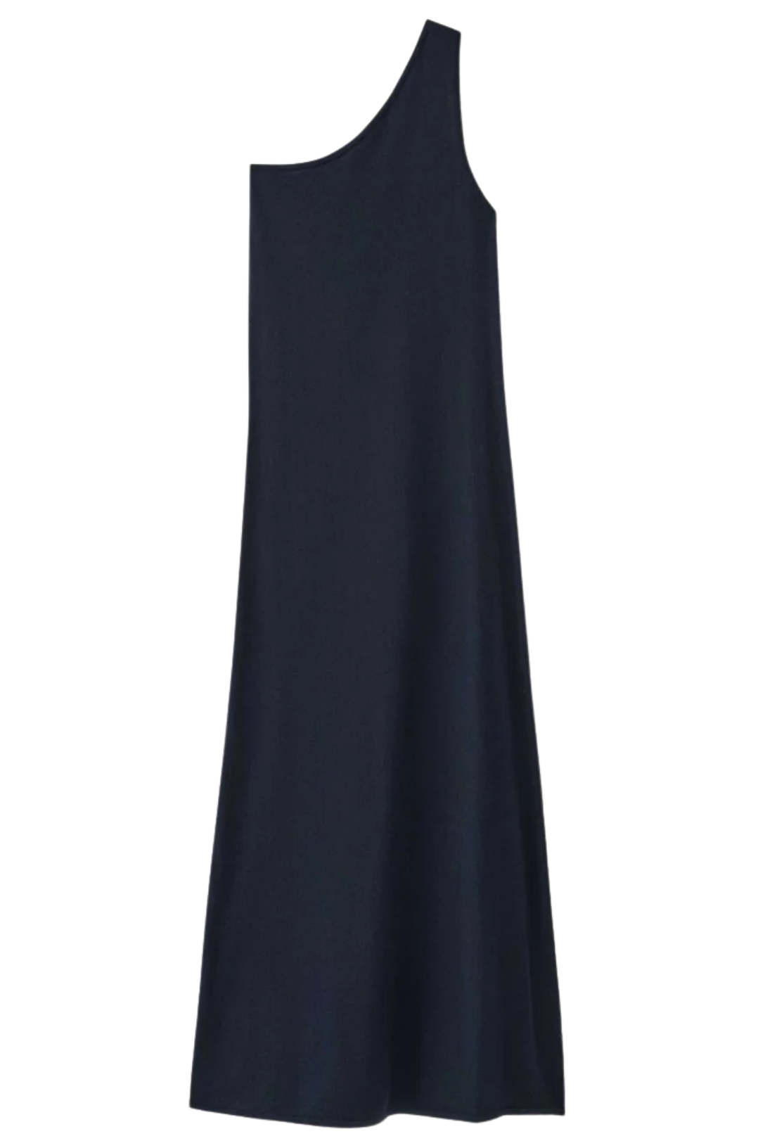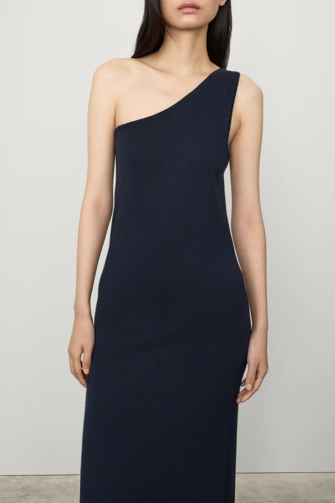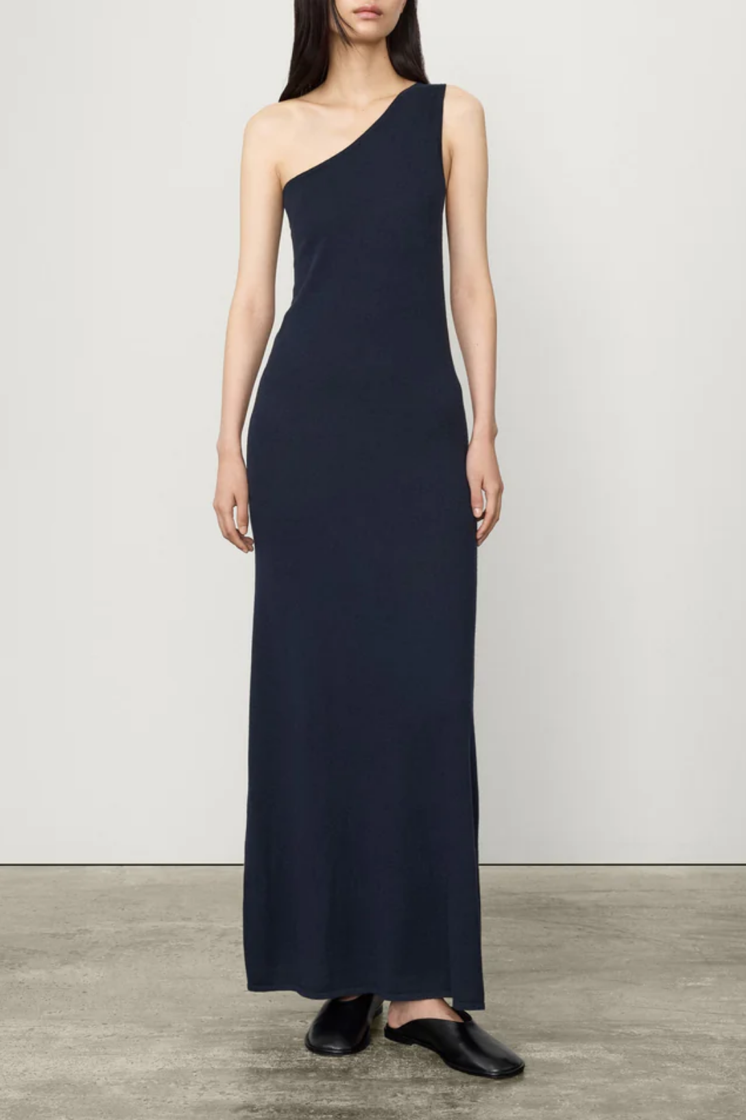 An asymmetric day-to-evening piece, the Oliva dress is crafted in jersey-inspired fine knit cashmere blended with cotton. The regular fit, contouring silhouette is shaped by its one shoulder design which falls into a gently draped, full-length skirt.