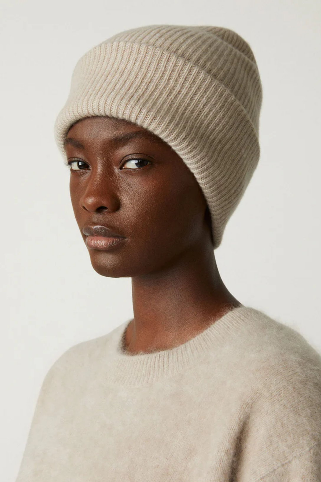 A trusted winter warmer, the Stockholm beanie is crafted in chunky, heavy knit cashmere for sumptuous warmth. The relaxed fit is contrasted by a ribbed, wide brim which is folded at the hem.