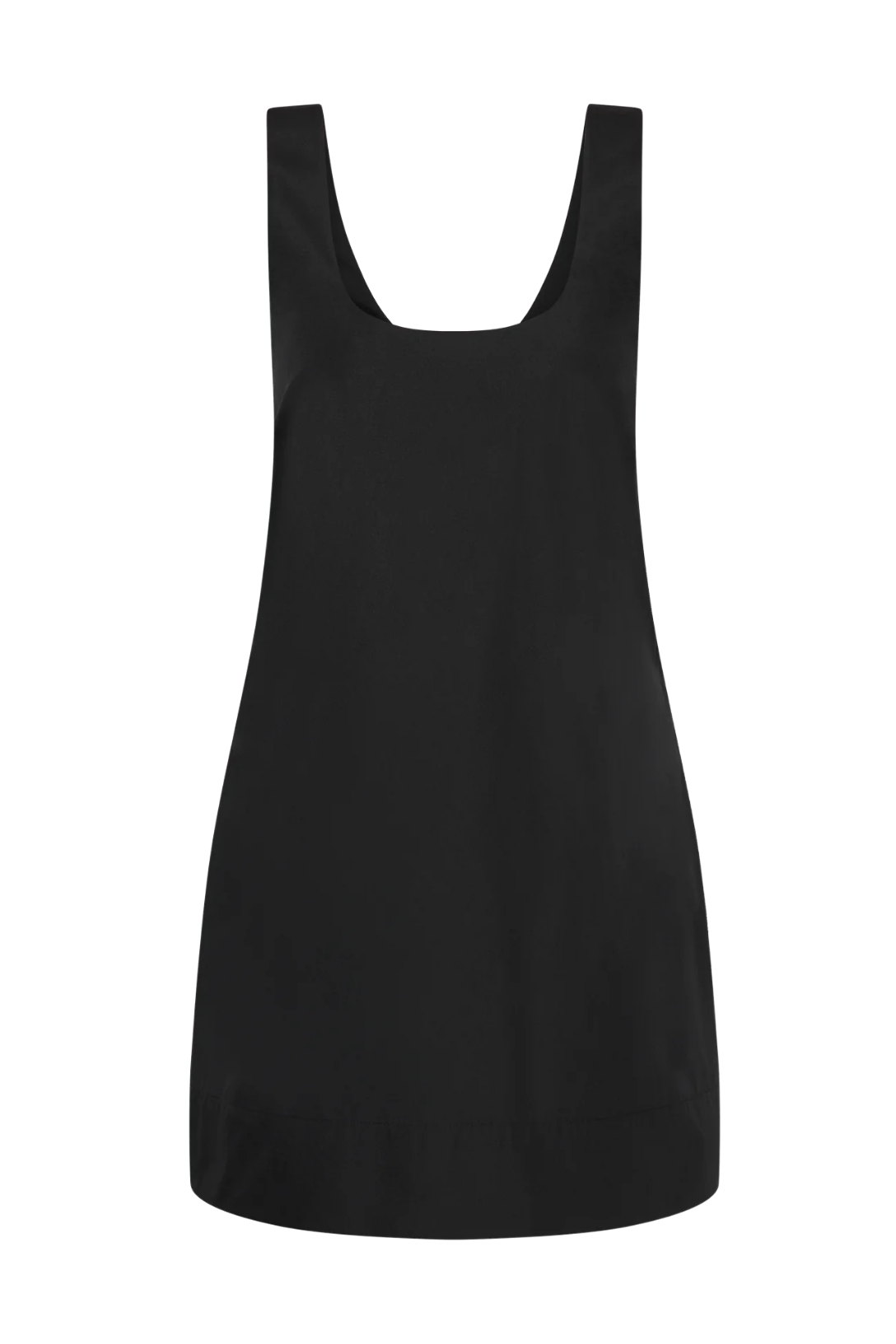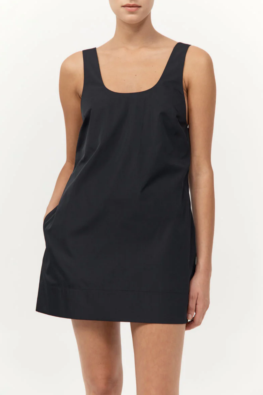 Cut to a mini length with front and back low scoop necklines, featuring bust darts for subtle shaping, sleek shoulder straps and an unlined finish that keeps the silhouette light and effortless. Crafted from a soft recycled polyester and silk blend, the Jordan Mini Dress offers an elevated take on everyday dressing.