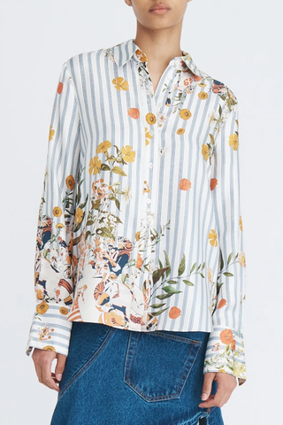 Doubled Cropped Button Down Shirt | Blue Multi Stripe