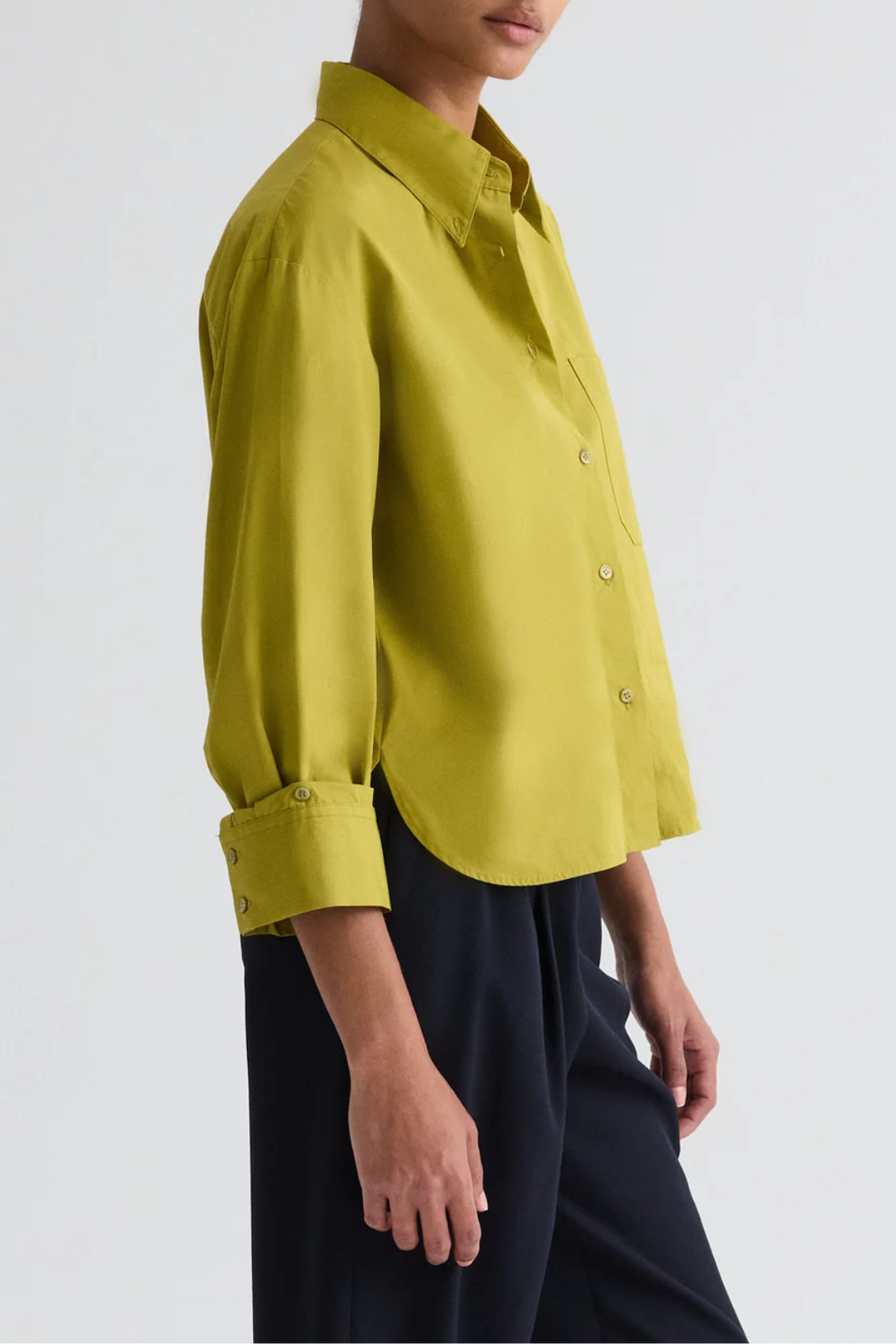 Slightly cropped long sleeved button up in super compact poplin. The J.D is a boxy fit with a curved hem and box pleat at the back. Complete with a chest patch pocket, point collar and our signature single roll button cuffs.