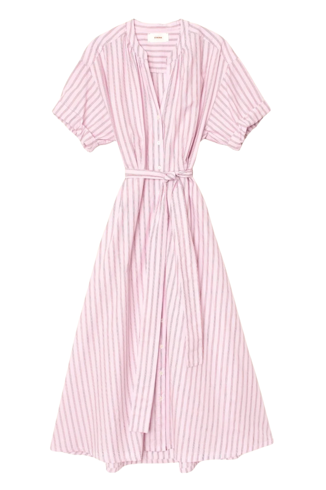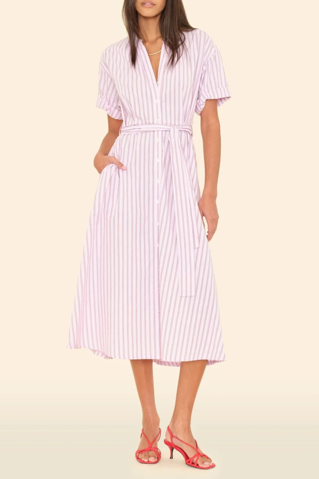 Earn your stripes. Liora is updated this season in XIRENA's lightweight cotton stripe. Liora is an a-line midi shirtdress with a band collar, V-neck, button-front, rolled sleeves, back yoke, optional self-tie belt with belt loops, and side seam pockets.