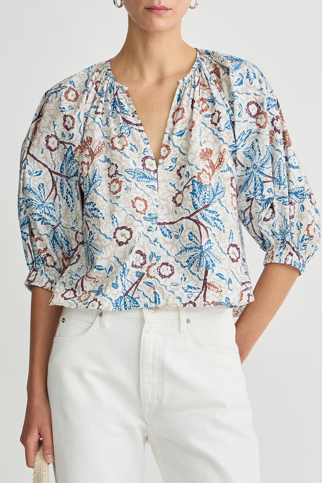 A beautiful pull-over top in a brand new print for this season, dressed up or kept easy. Crafted from 100% regenerative cotton.