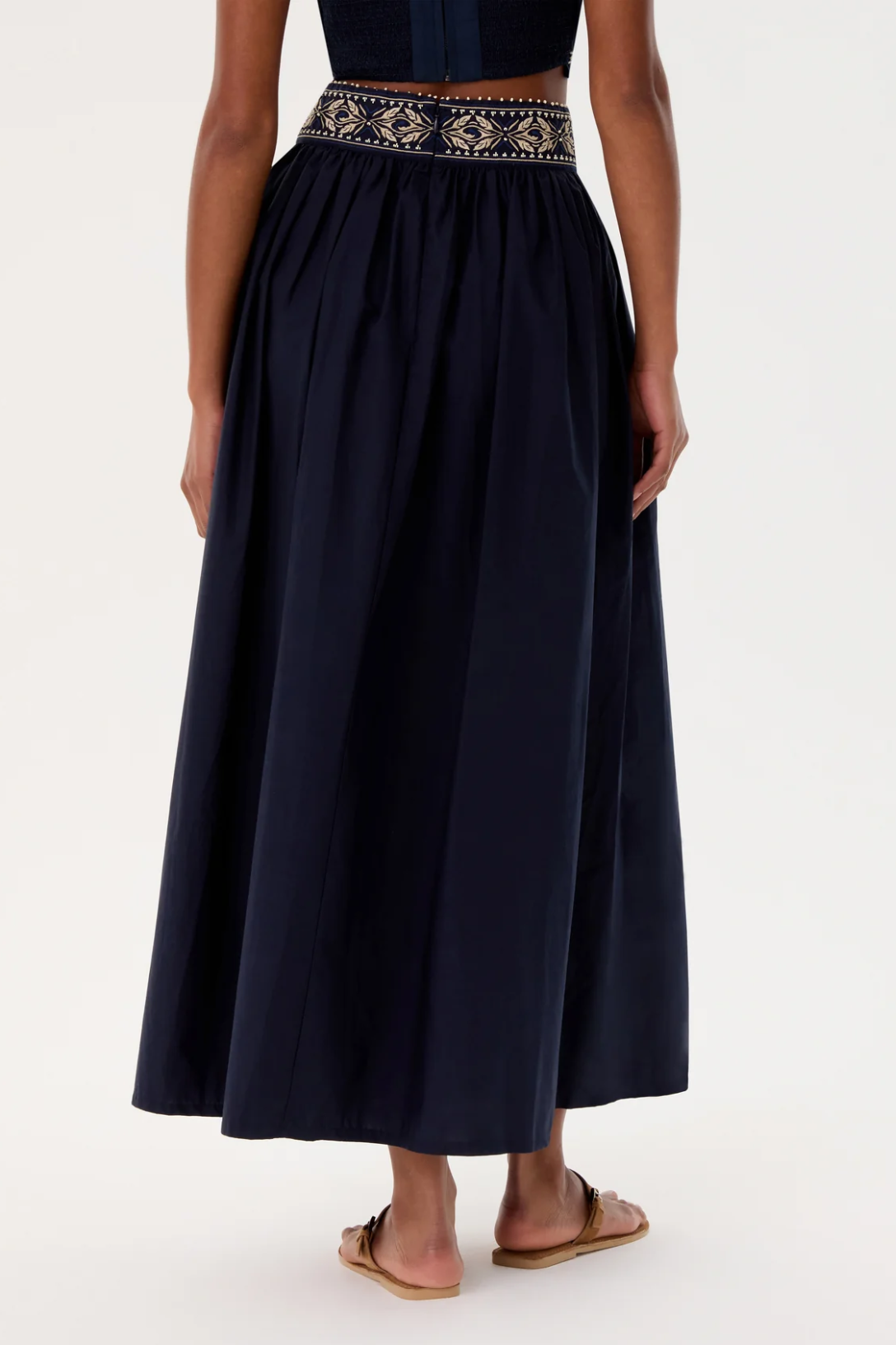 - Embroidered waistband with hand-finished beadwork