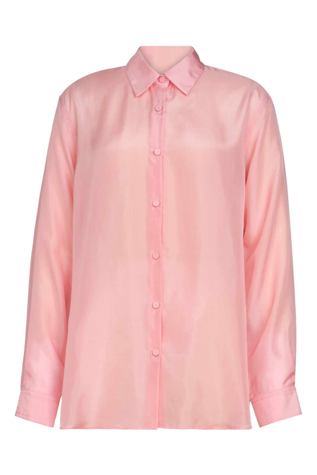Relaxed long-sleeve shirt with a classic point collar, full button front, and softly rounded hem. Designed with a straight, easy silhouette and buttoned cuffs for everyday wear. Cut from refined silk habotai, finished with an additional wash that enhances its smooth, fluid hand and natural sheen, offering lightweight drape with subtle durability.