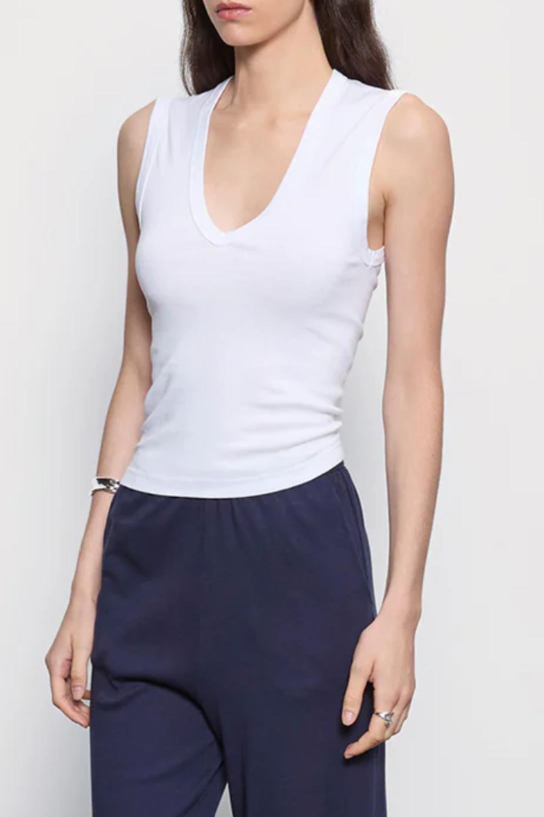 The New Classic Sleeveless V is made from the most breathable Supima cotton and offers a slimmer fit. Features a new V-neckline with bold binding at the neck and armholes to enhance definition and durability. Signature center back seam for a clean finish.