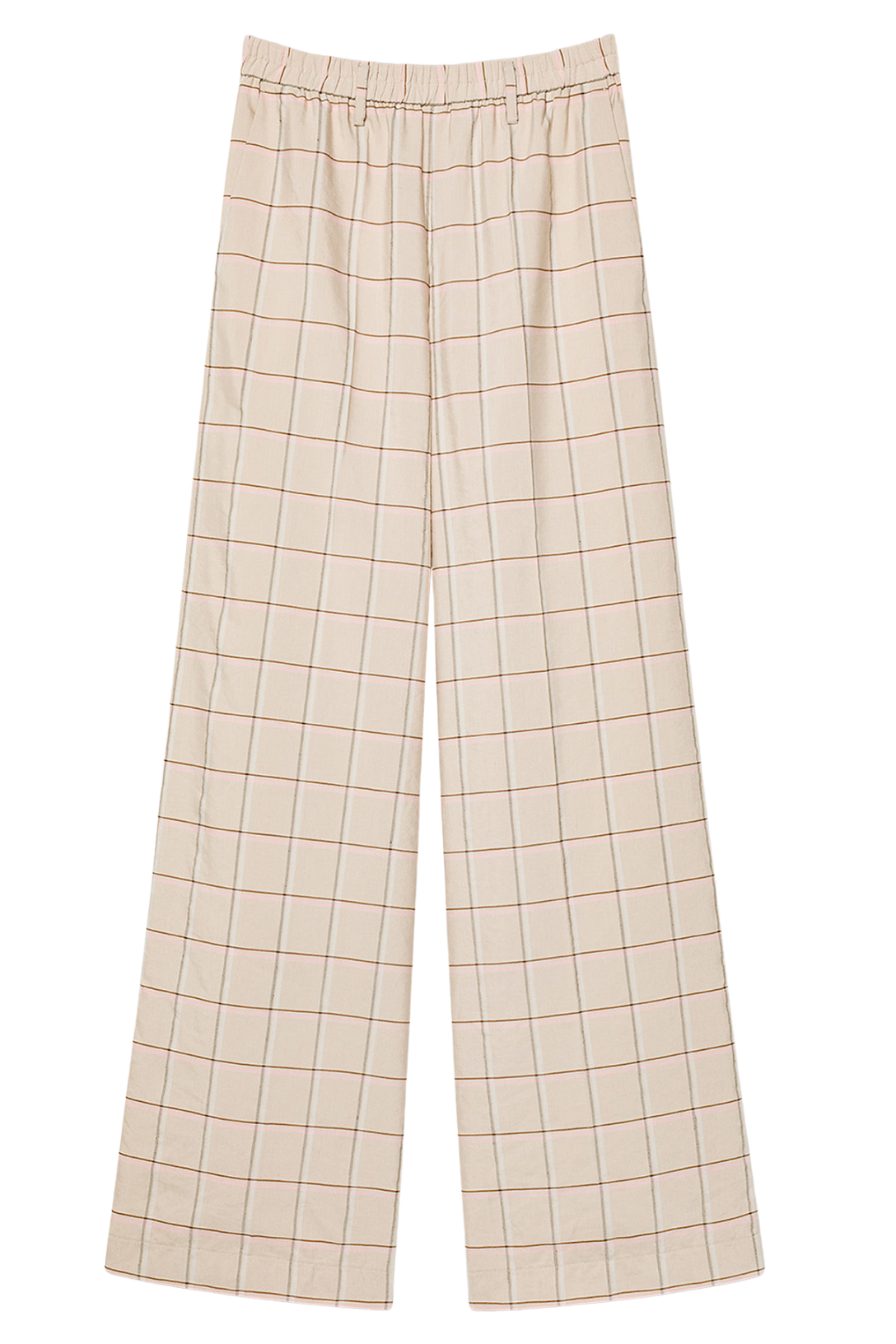Fluid and wide, with the ultra—comfy touch of an elastic waistband, the tartan loose pants wink at tailoring. The ample leg moves gracefully with your step. A pull—on pant to pair with a light tank and the matching overshirt.