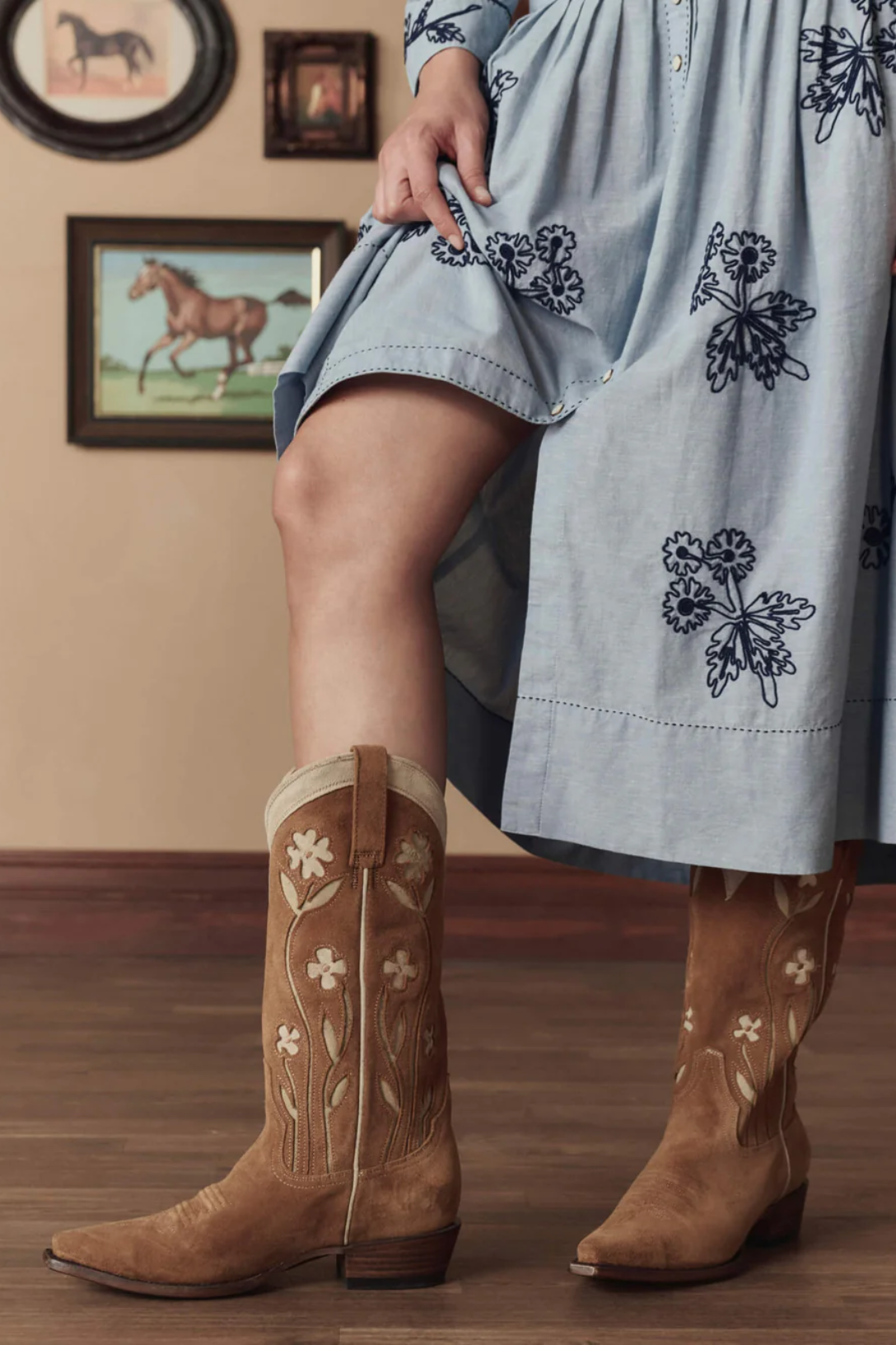 Made in collaboration with Stetson, whose legacy of authentic craftsmanship has defined the spirit of the West since 1865, this special edition boot combines time-tested craftsmanship with timeless western style. It features a supple suede vamp, a 13” suede shaft with intricate floral embroidery, and a statement-making snip toe. A co-branded all-leather sole, crafted with lemonwood pegs and brass nails, and a hand-stacked leather heel provide a firm foundation, while premium cowhide leather lining and a cushioned leather insole ensure all-day comfort and support.