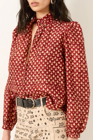 Annabel Mahogany Bhutti Shirt | Red Mahogany