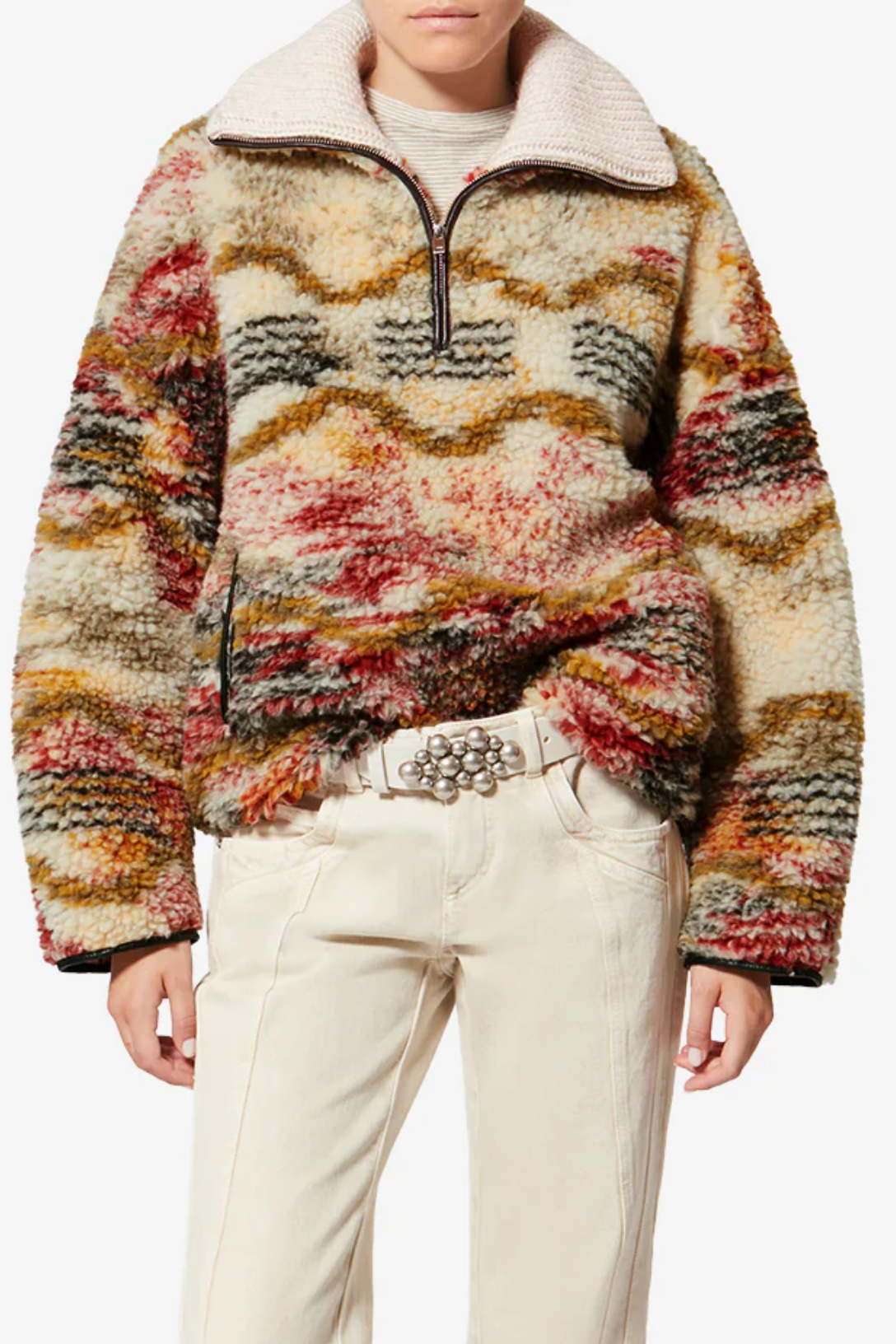 • Ribbed turn-down zip-up neckline with "Isabel Marant" engraved slider
