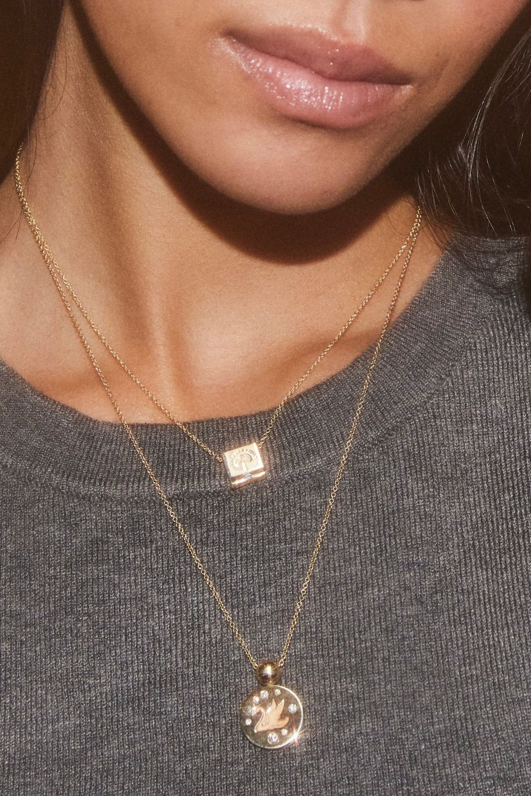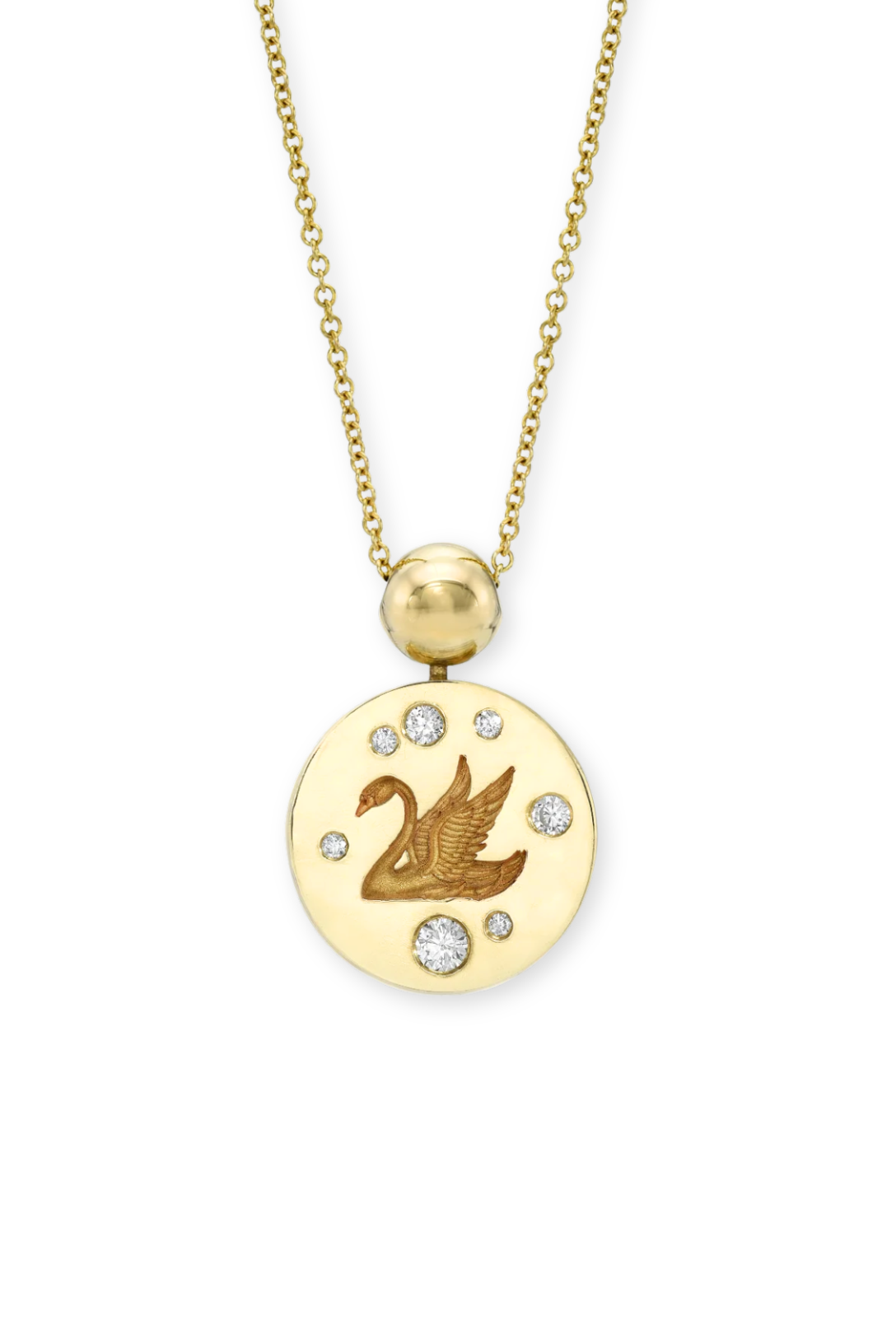Polished 14K Yellow Gold signet necklace with 0.25cts of white diamonds on a 20" chain. Pendant diameter is approx. 16.5mm.