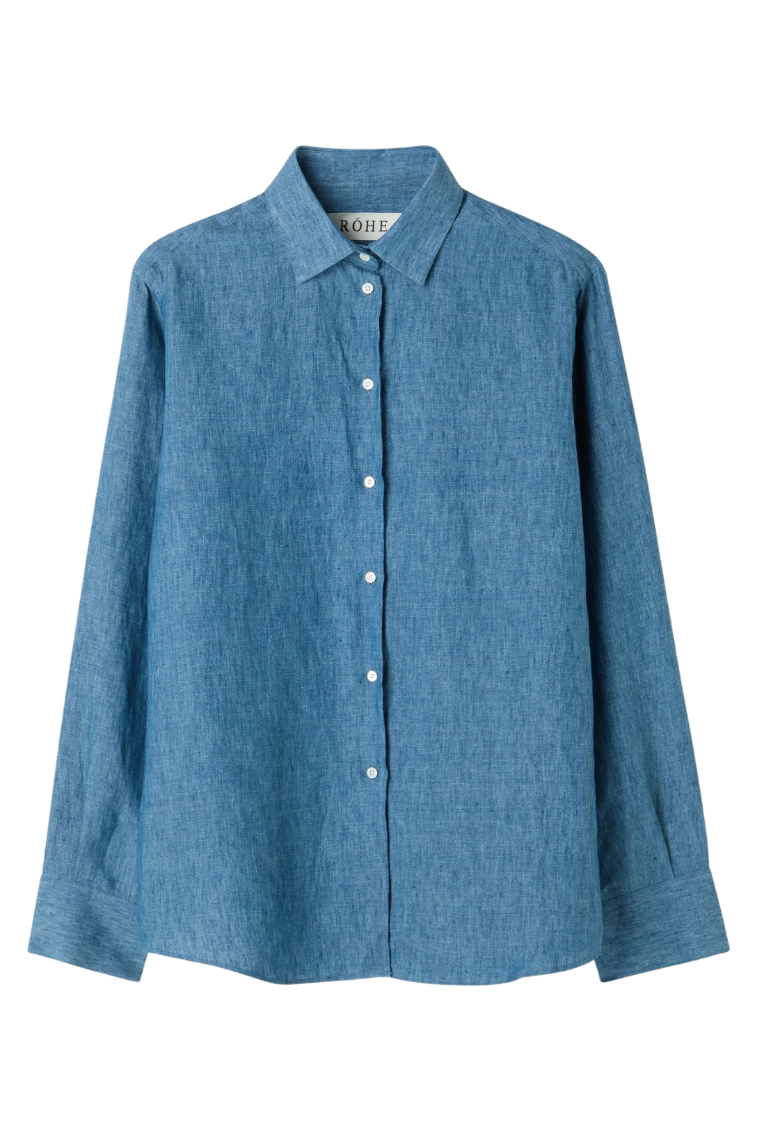 A classic shirt cut from breathable blue chambray linen with a soft washed delavé finish. Designed with clean lines and a relaxed fit.
