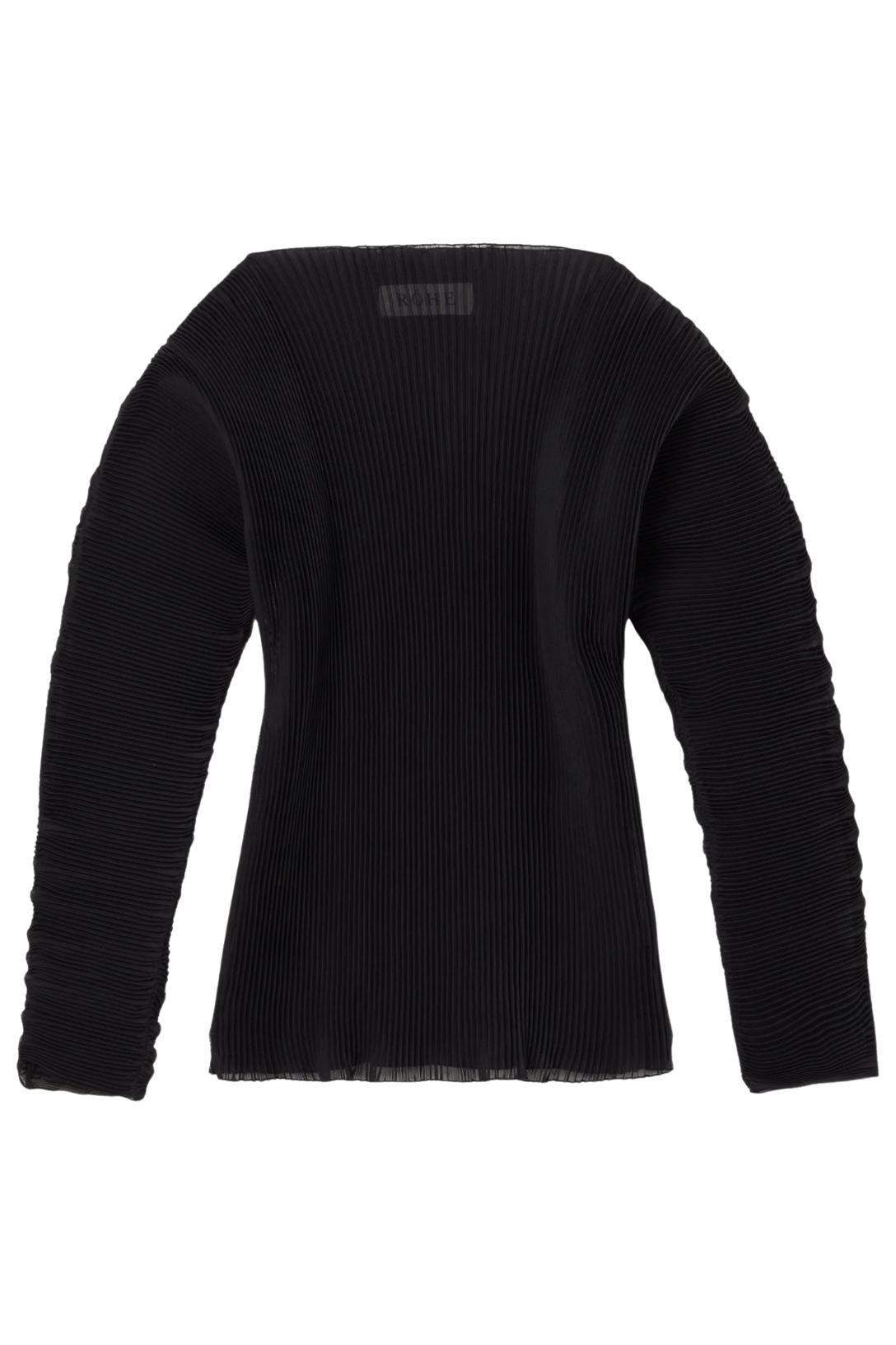 - Sculptural plissé, fluid shape, long-sleeve, semi-transparent